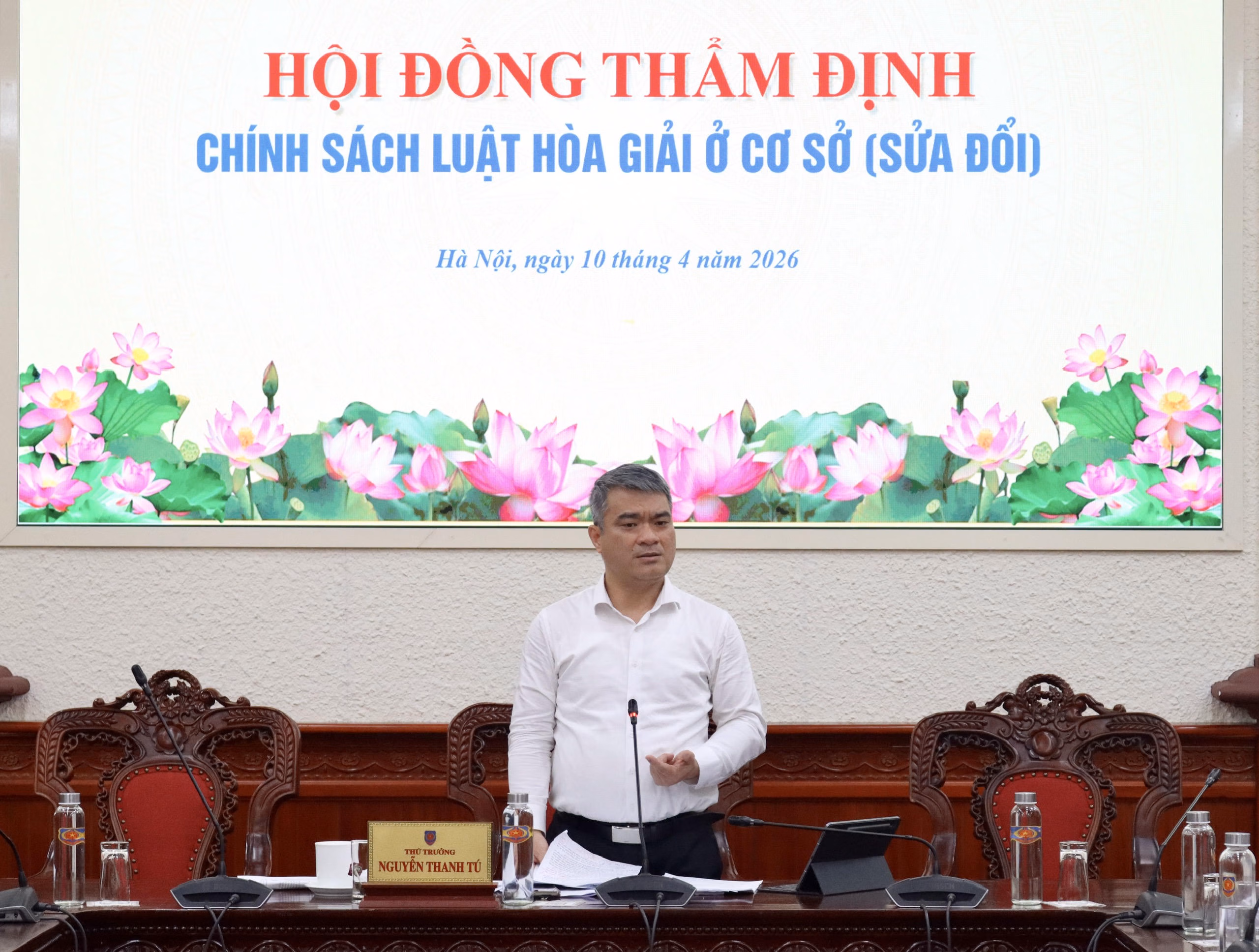 Chiều 10/4, Thứ trưởng Bộ Tư pháp Nguyễn Thanh Tú chủ trì Hội đồng thẩm định chính sách Luật Hòa giải ở cơ sở (sửa đổi).