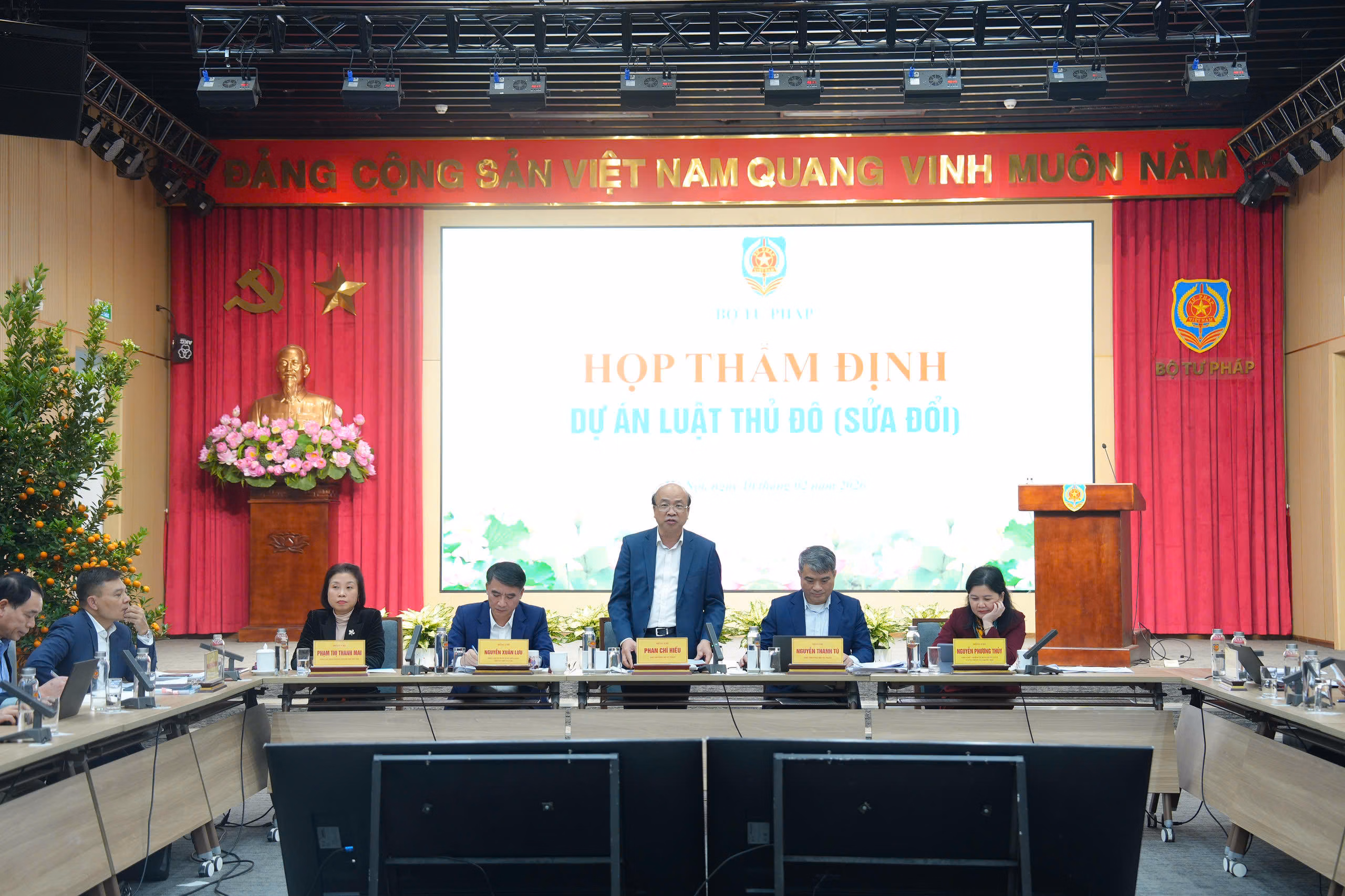 Chiều 10/2, Bộ Tư pháp tổ chức Họp thẩm định dự án Luật Thủ đô (sửa đổi). Thứ trưởng Bộ Tư pháp Nguyễn Thanh Tú – Chủ tịch Hội đồng thẩm định chủ trì cuộc họp. Cùng dự có Uỷ viên Trung ương Đảng, Thứ trưởng Bộ Tư pháp Phan Chí Hiếu, Phó Chủ nhiệm Uỷ ban Pháp luật và Tư pháp của Quốc hội Nguyễn Phương Thuỷ, Phó Chủ tịch UBND TP Hà Nội Nguyễn Xuân Lưu, Phó Chủ tịch HĐND TP Hà Nội Phạm Thị Thanh Mai cùng dự.