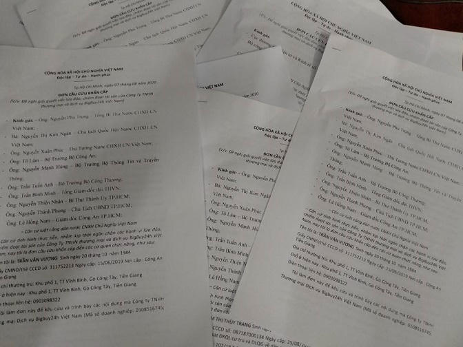 (PLVN) - Hàng chục lá đơn của những người tham gia sàn thương mại điện tử BigBuy24h gửi đến cơ quan chức năng và báo chí, tố cáo công ty này lừa đảo, chiếm đoạt tiền của họ, khiến bây giờ họ đứng trước cảnh nợ nần, mất tiền, mất nhà.