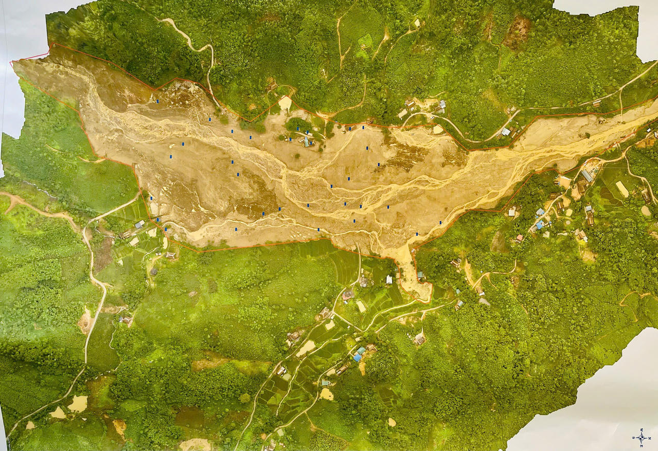 Thôn Làng Nủ sau khi bị lũ quét (Ảnh do Sở chỉ huy tìm kiếm cứu nạn Lào Cai cung cấp). |