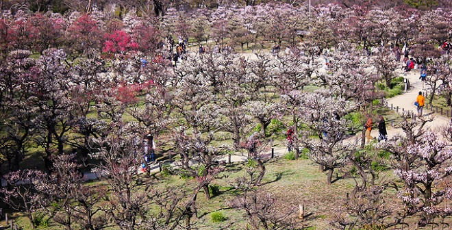 (PLO) - Đến các công viên ở Nhật Bản mùa này du khách có thể ngắm hoa mận, hoa trà và hoa cải.