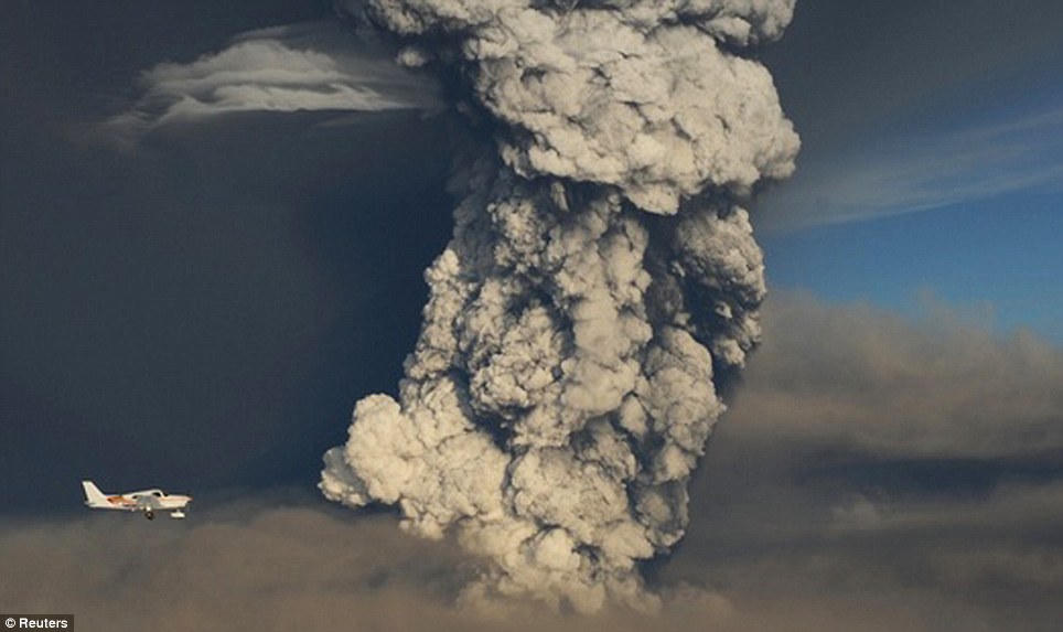 Đám mây tro núi lửa từ vụ ngọn núi lửa Eyjafjallajökull phun trào hồi năm 2010, ảnh hưởng các chuyến bay khắp châu Âu, nhiều phi trường buộc phải đóng cửa |