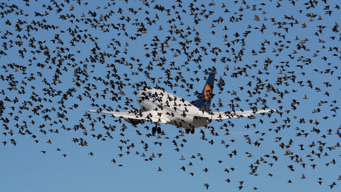 | Chiếc máy bay Boeing 737-500 của hãng hàng không Lufthansa gặp sự cố vì một đàn chim trong lúc đang cất cánh |
