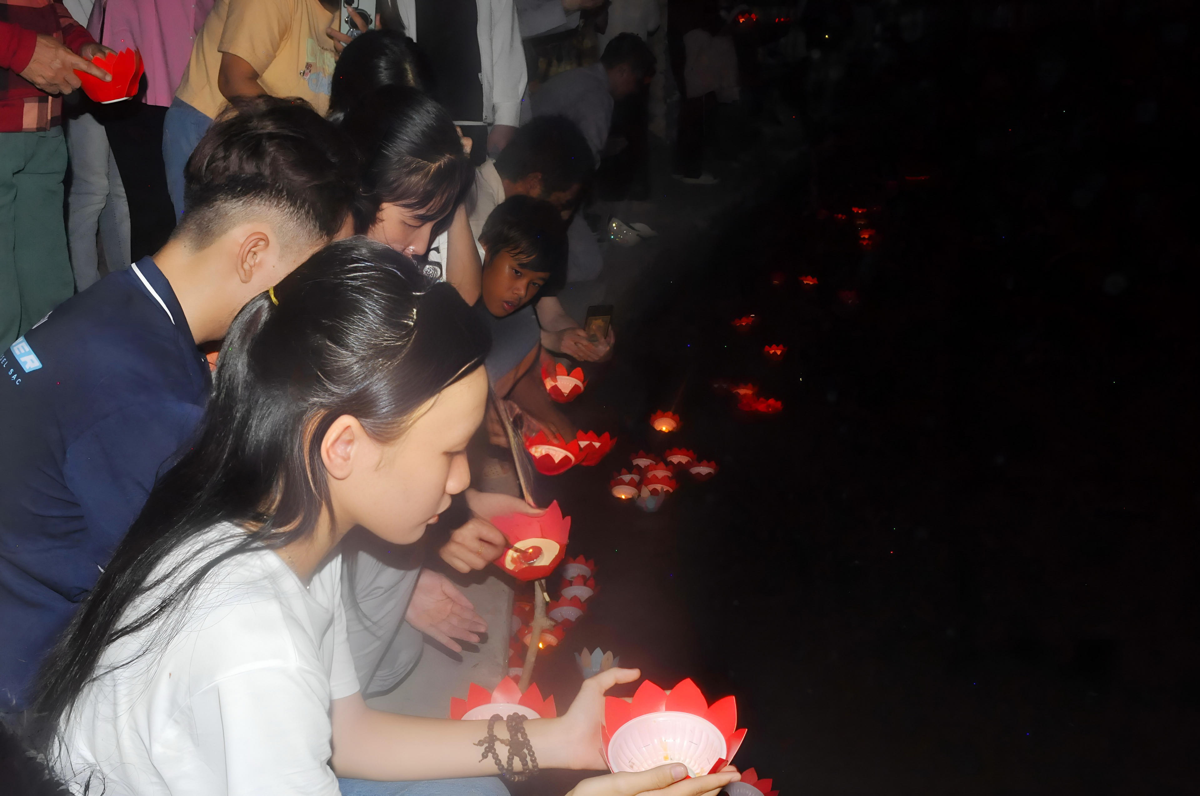 Người thân của nạn nhân tử vong vì tai nạn giao thông thả đèn cầu nguyện cho hương linh của những người tử nạn. |