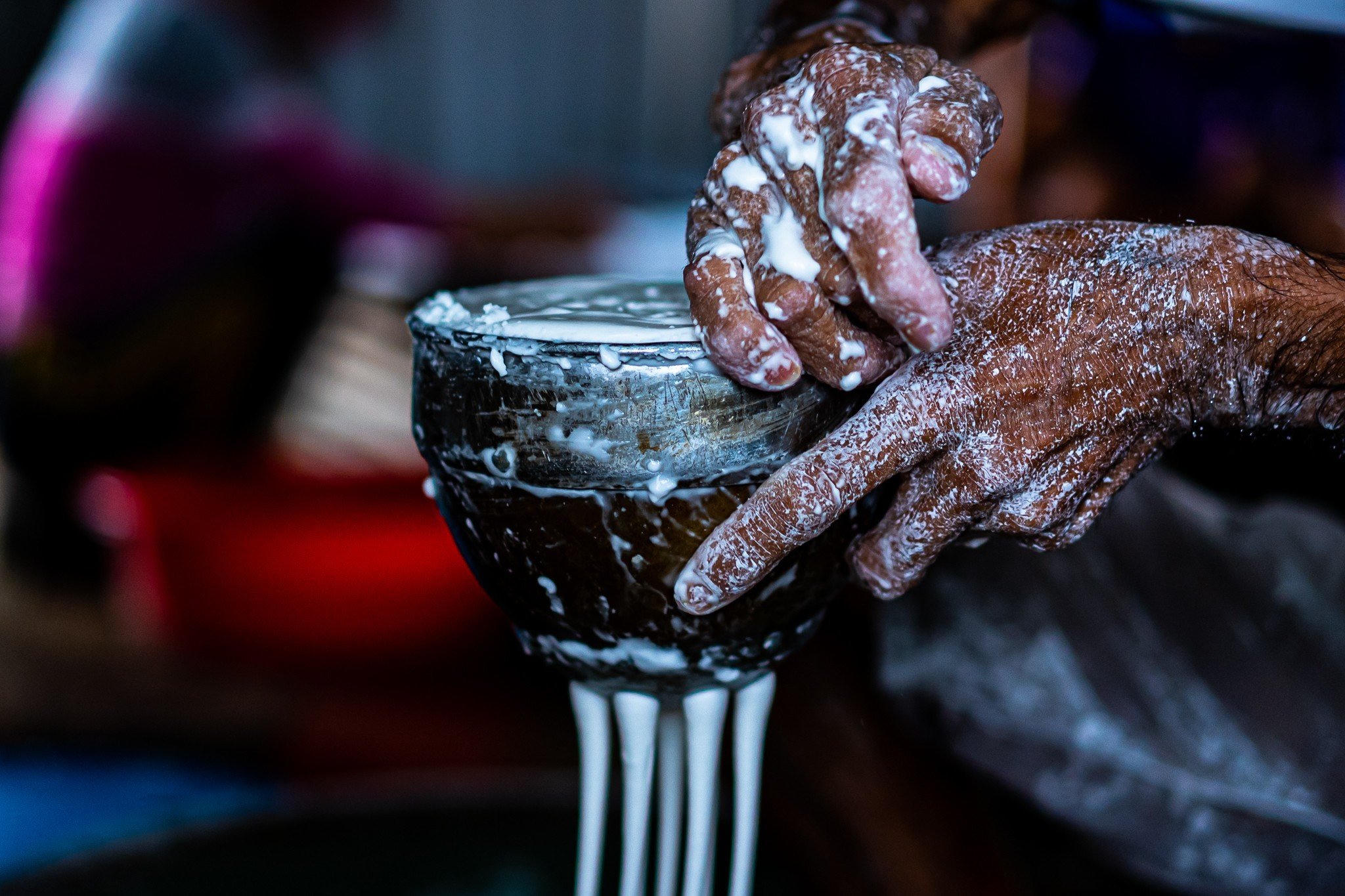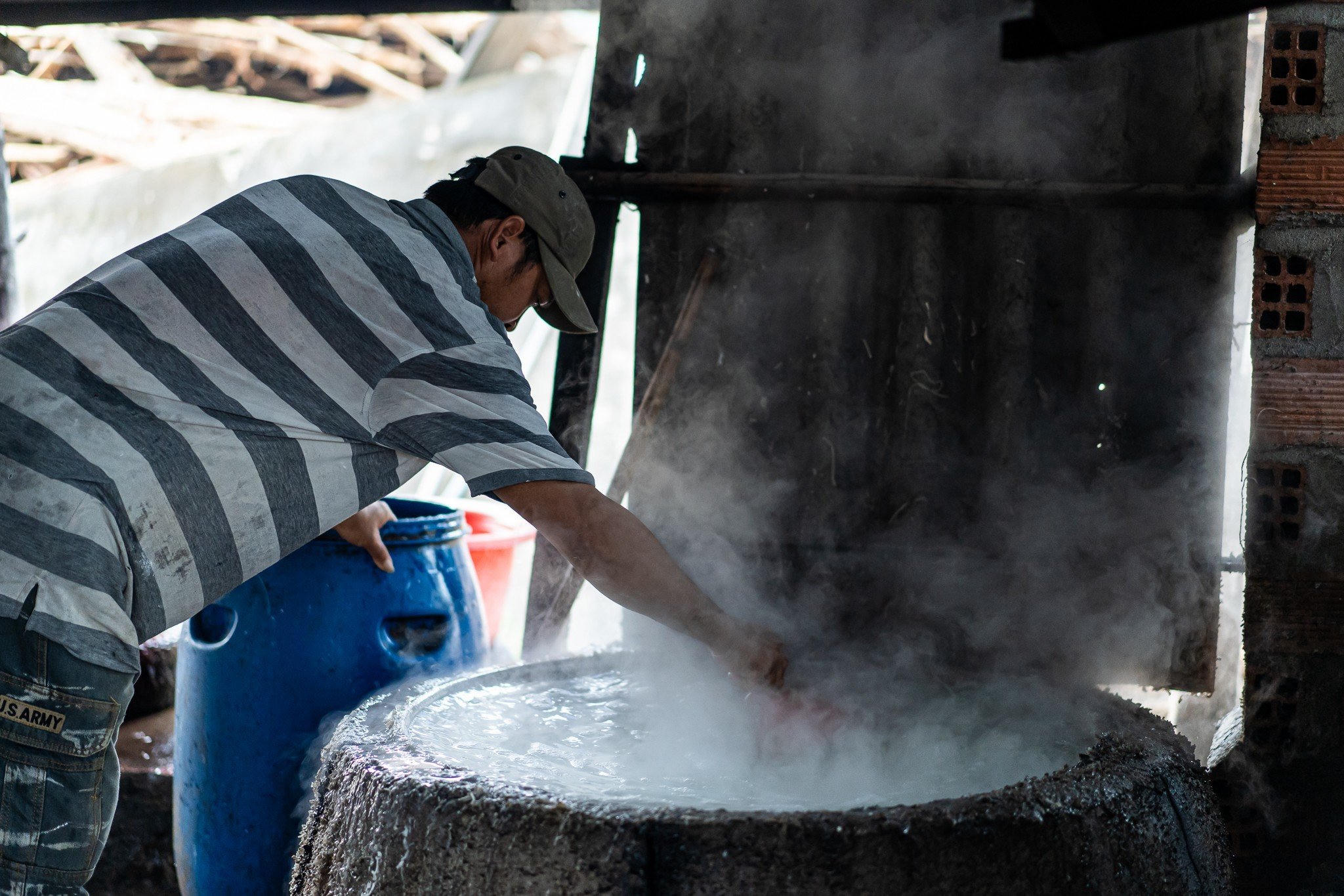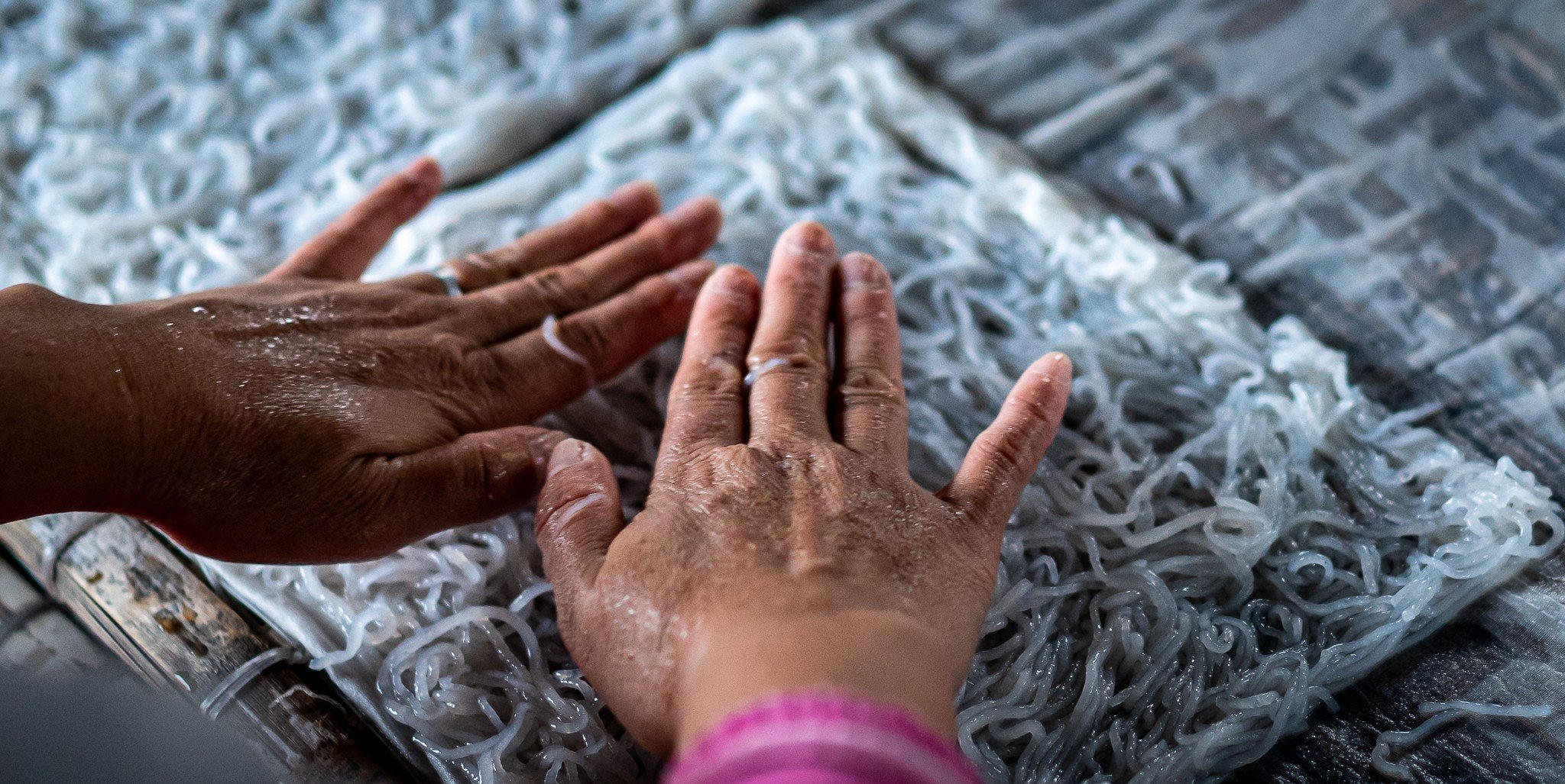 Để có thể cho ra các sản phẩm bánh, bún thơm ngon thì bắt đầu từ tờ mờ sáng cho đến tận chiều tối, các thợ làm bánh, bún phải thực hiện nhiều công việc theo quy trình sản xuất (ảnh: Dũng Nhân).