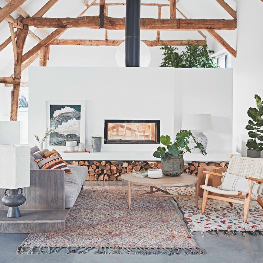 Một trong những thách thức lớn nhất đối với các kiến trúc sư là khoanh vùng không gian sinh hoạt chính với chiều dài 18m. Ban đầu họ dự định đặt lò sưởi ở một đầu của căn phòng, nhưng chủ nhà muốn có một lò sưởi hai mặt ở giữa để ngăn cách các phòng, đồng thời sử dụng được cho một khoảng không gian rộng hơn.
