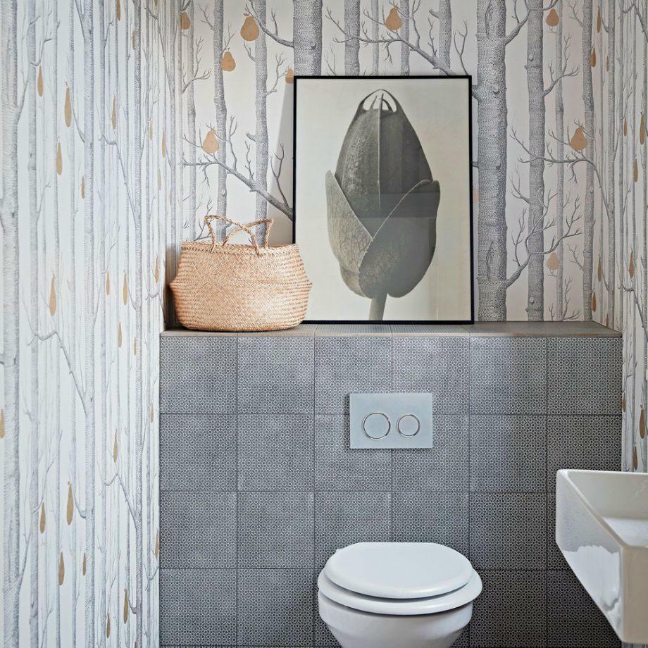 Phòng tắm được thiết kế theo phong cách đơn giản và gọn gàng phù hợp với không gian nhỏ. Chủ nhà đã thêm ra một chút họa tiết nhỏ trong phòng tắm để nội thất thêm phần thú vị.