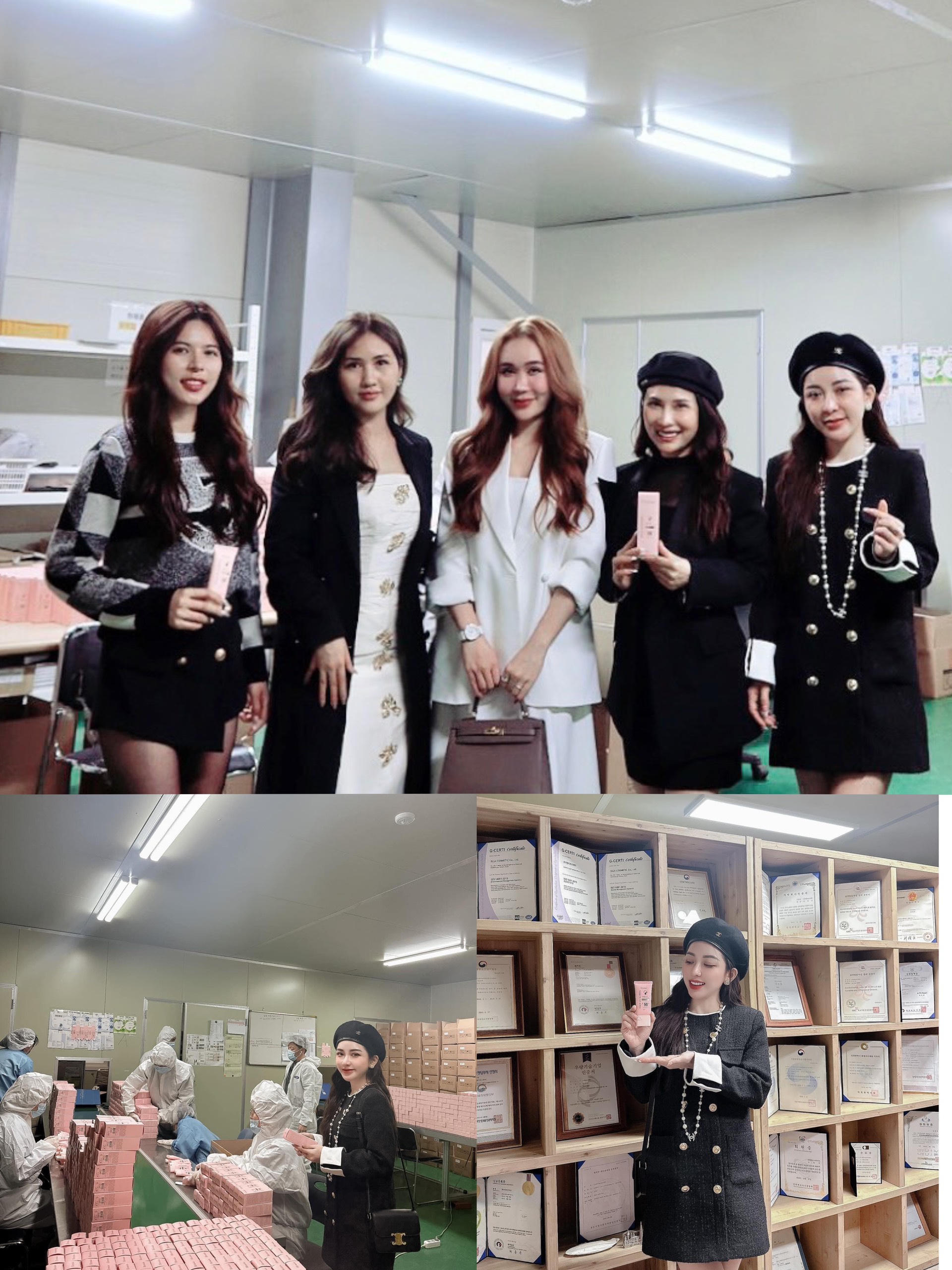 Founder Nguyễn Ngọc Thuý cùng với các CEO của thương hiệu có mặt trực tiếp tại nhà máy sản xuất sản phẩm kem chống nắng Hemia |