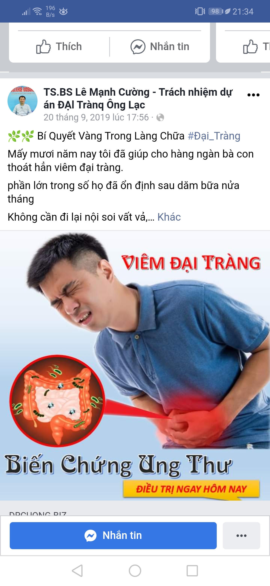 Điều kinh hãi là với tất cả khách hàng, V đều tư vấn khẳng định chỉ có Đại tràng Ông Lạc là điều trị chuyên sâu từng loại viêm đại tràng. Thậm chí, đã uống Đại tràng Ông Lạc thì không cần phải kiêng bất kỳ loại thực phẩm nào, kể cả uống rượu bia. V khẳng định với khách hàng sau khi sử dụng chỉ sau 1 tháng là sẽ dứt điểm hoàn toàn triệu chứng bệnh đại tràng, sau 2 tháng sẽ khỏi hoàn toàn.