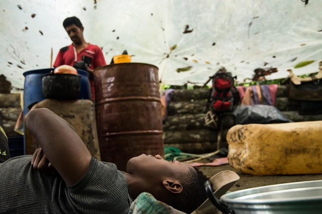 Nằm cách tajo độ 200m và được ngụy trang bởi những gốc cây, căn phòng trông không khác một cái lều nhựa. Quanh túp lều tạm còn trữ hẳn 500 lít xăng, ban đêm được mang đi giấu. Suốt 4 ngày, dù cố gắng hết sức nhưng tôi không thể nào thu hoạch hơn 20kg lá coca. Nhưng đáng sợ hơn là bí mật chụp ảnh hiện trường. Mỗi lần nâng máy ảnh lên, tim tôi lại đập thình thịch, cầu mong đừng có ai tình cờ đi ngang qua, căn vặn lý do vì sao chụp ảnh. Sau 4 ngày nghiền lá coca, Léder trả tiền công cho người làm thuê, một số lại tìm tới các đồn điền khác để làm việc, số khác tìm tới Llorente để trang trải các khoản nợ.