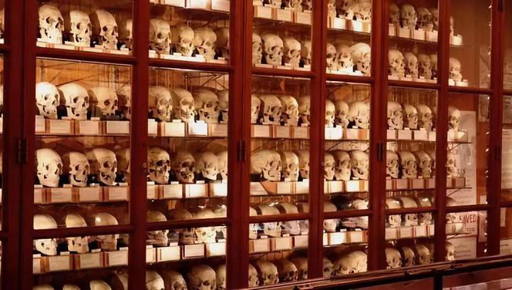 Nổi bật nhất trong không gian bảo tàng phải kể đến bức tường sọ người. Dưới mỗi hộp sọ là thông tin tuổi, nơi sinh và nguyên nhân tử vong. 139 hộp sọ người này là từ Joseph Hyrtl (1810 - 1894) và có liên quan đến ngành Não tướng học (Phrenology) ở thế kỷ 19. Não tướng học là một khoa học giả, cho rằng trí thông minh, tính cách và chủng tộc của con người có thể suy ra từ cấu trúc hộp sọ.