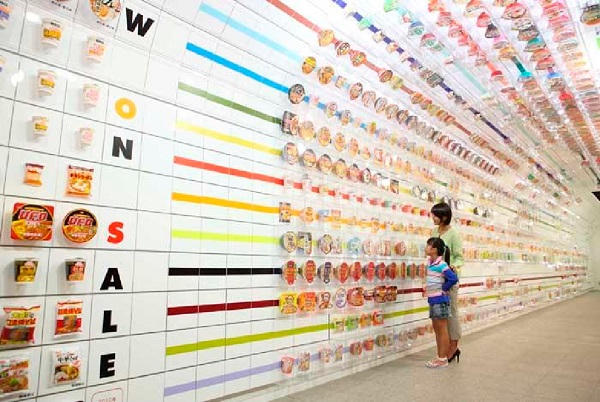 Bước vào trong bảo tàng, du khách sẽ được trải nghiệm không gian Đường hầm mì ăn liền (với rất nhiều gói mì ăn liền và mì ly đủ màu sắc được bày bán trên khắp thế giới) để tới bản sao của căn lều mà Ando đã giam mình để sáng chế ra công thức mì ăn liền. Du khách cũng có cơ hội được thưởng thức Ramen vũ trụ, loại mì khô lạnh được chế tạo dành riêng cho nhà phi hành gia Soichi Noguchi vào năm 2005.