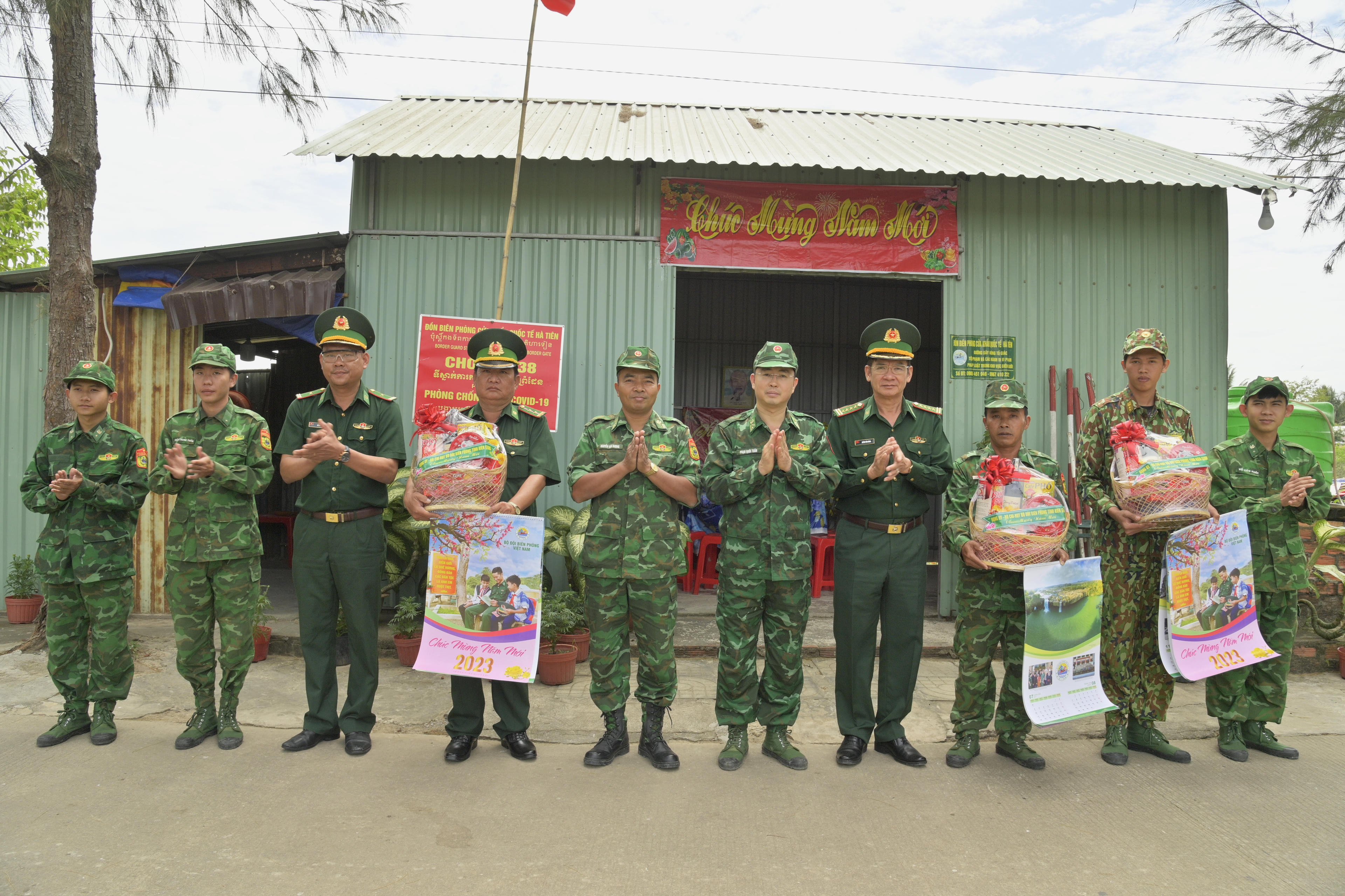 Đoàn công tác thăm, tặng quà Tết ở các chốt trên tuyến biên giới Hà Tiên. |