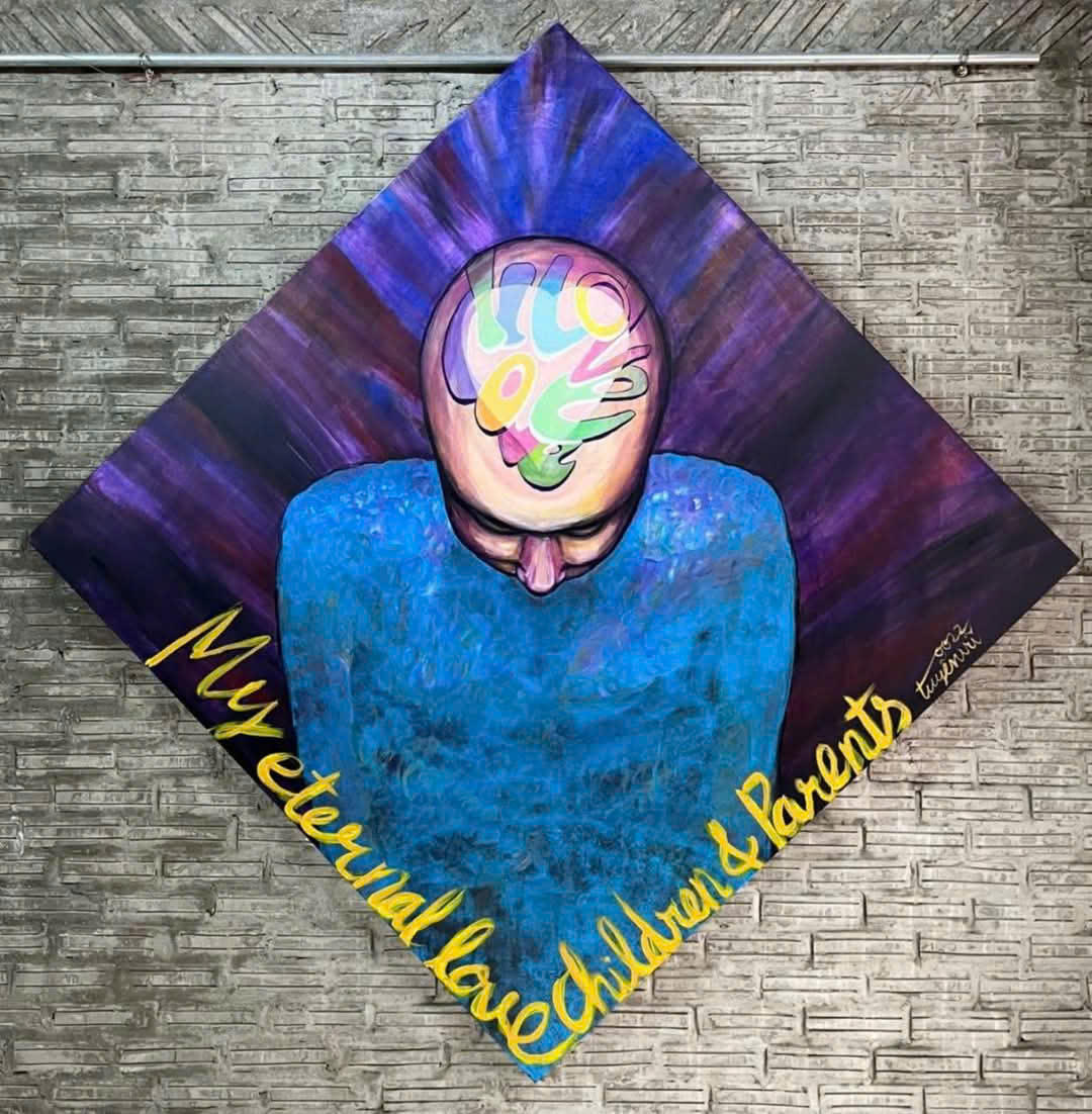 "Ban ngày, tôi làm nghề chống thấm để mưu sinh. Ban đêm, tôi vẽ – để sống thật với chính mình. Ngoài vẽ trên toan, tôi còn vẽ trên những tấm phế liệu nhặt ở bãi rác. Với tôi, màu sắc là người bạn đồng hành. Tôi trò chuyện, hát ca và khiêu vũ cùng nó. Nó cho tôi hy vọng, yêu thương và cảm giác được sống trọn vẹn mỗi ngày.", Họa sỹ Tuyến Vũ chia sẻ.