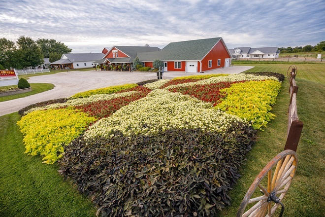 Tuy vậy những khu vườn "Quilt" dọc theo Đường mòn Di sản (Heritage Trail) trải qua các thành phố Bristol, Elkhart, Goshen, Middlebury, Nappanee, Shipshewana và Wakarusa (quận Elkhart, bang Indiana) thì những bông hoa được thay thế vải để tô điểm cho những bức tranh quilt thiên nhiên muôn màu sắc. Đây cũng là vườn quilt độc đáo duy nhất ở Hoa Kỳ.