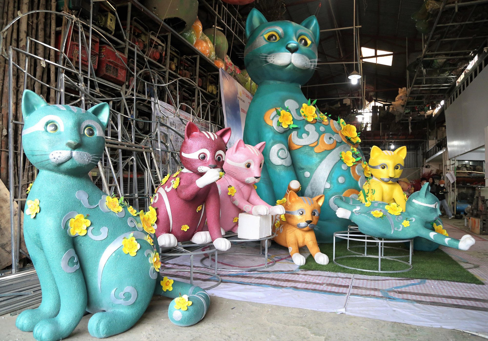 (PLVN) - Những ngày này, ông Văn Tòng cùng các nhân viên tại xưởng chế tác linh vật ở quận 12, TP HCM tất bật làm việc để hoàn thiện những linh vật mèo, chuẩn bị cho việc trưng bày ở đường hoa Tết 2023.