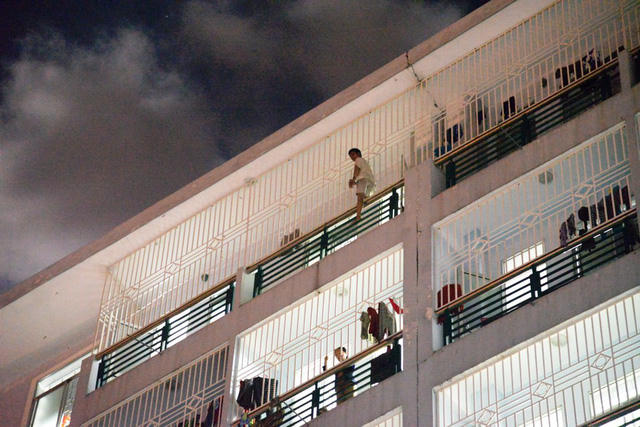 Đeo bám ngoài lan can suốt từ 6h chiều hôm trước đến 5h sáng ngày 25/9 thì ông N. tuột tay rơi xuống. Rất may ông N. rơi trúng mái tôn của khu nhà thấp hơn trong bệnh viện nên chỉ bị thương.