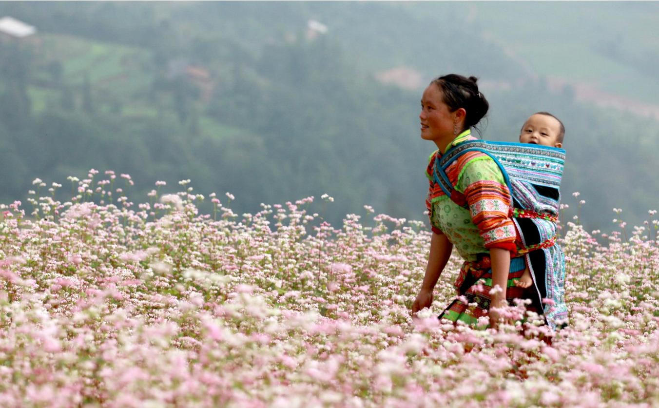 Từ tháng 9-12, cao nguyên đá hút du khách với màu hồng rực rỡ của hoa tam giác mạch. Các đại danh để bạn ngắm loại hoa này là chân cột cờ Lũng Cú, Sủng Là, Đồng Văn, Phố Cáo, Ma Lé...