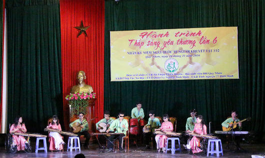 Một buổi chiều trở lại thăm NNC, tôi được nhóm nhạc dành tặng nguyên một lai-sô hoành tráng. Tôi còn may mắn được chị Phượng hát tặng lại bài Đêm trăng nhớ Bác, bài hát mang dáng dấp làn điệu bài chòi này đã giúp chị đạt được Huy chương vàng trong Cuộc thi Tiếng hát người khuyết tật toàn tỉnh 5 năm trước. Căn phòng cứ thế ngân lên những ca từ trầm ấm trên nền nhạc cổ khiến khách không muốn rời chân.