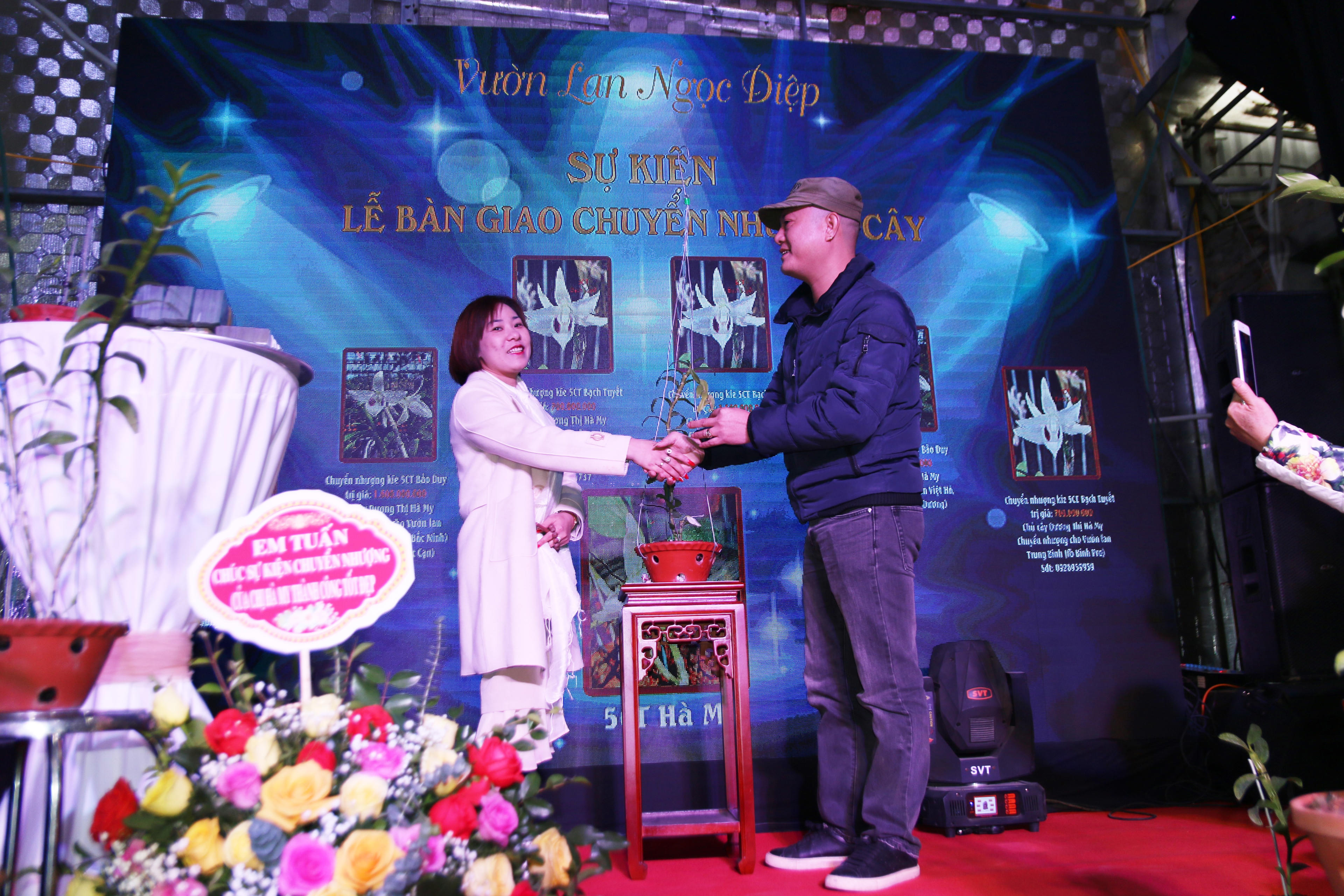 Anh Đinh Văn Đông – Chủ vườn Lan Đông Phương chia sẻ: “Tôi vừa được chuyển nhượng thành công từ vườn Lan Ngọc Điệp 2 Lan Bạch Tuyết và 1 Lan Bảo Duy với giá chuyển nhượng tương đối trung bình so với các phiên giao dịch khác. Về chất lượng lan của Hà My thì tôi đánh giá là tốt và cách chuyển nhượng lan rất chi là tình cảm”.