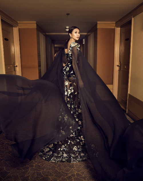 Trong bộ cánh dạ hội được chăm chút kỹ từng đường may, đính đá ánh kim hay thêu thủ công, Thanh Hằng mang một sức hút ma mị, sắc sảo.
