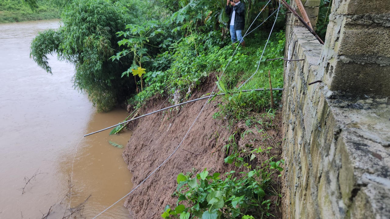 Cục bộ có vị trí mép sạt chỉ còn cách móng nhà dân 1-2 m, cách đường tỉnh 523 từ 4-6 m xuất hiện một số vết nứt dọc bờ sông, tiềm ẩn nguy cơ mất an toàn đối với đường tỉnh 523.