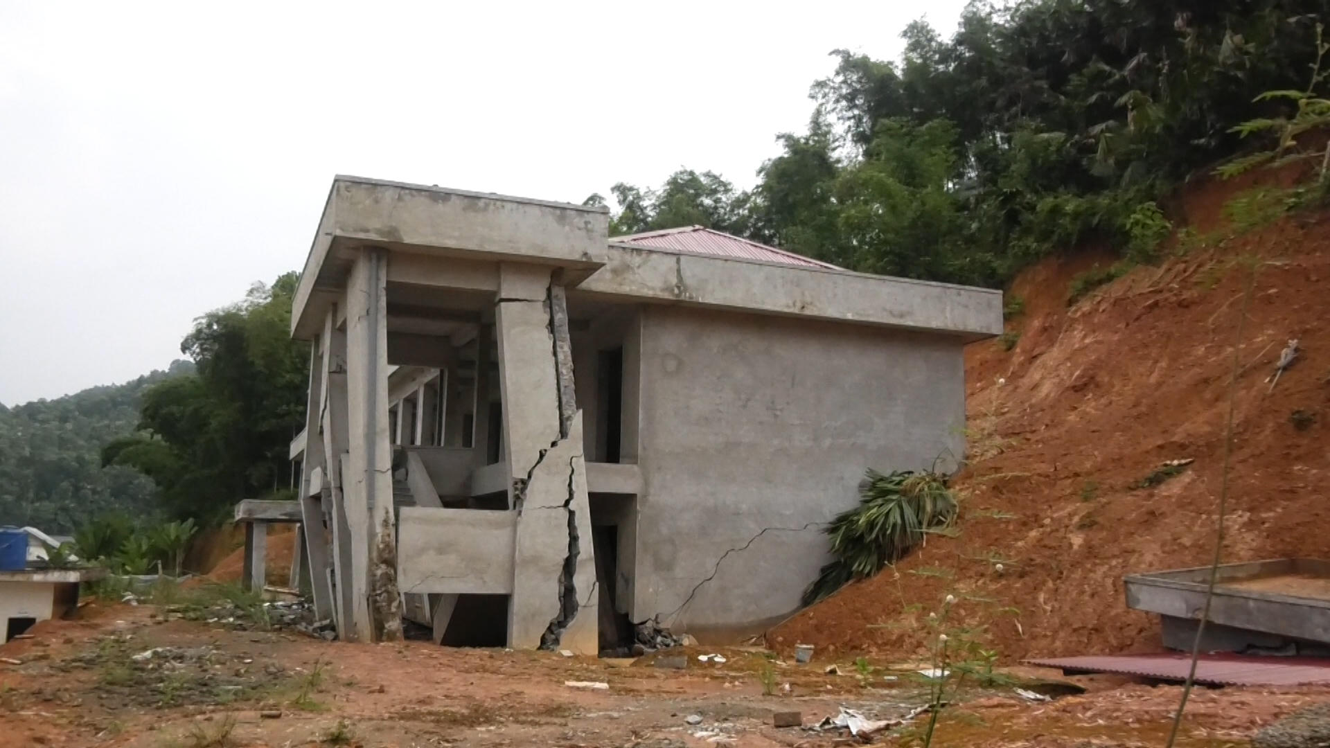 Sạt lở đồi đất phía sau công trình xây dựng Trường THCS Lâm Phú, huyện Lang Chánh, Thanh Hóa. |