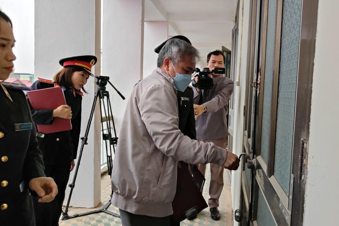 Lực lượng chức năng tham gia đã liệt kê tài sản ở tất cả các phòng của khu nhà 3 tầng hai đơn nguyên, nhà bảo vệ, nhà bếp, nhà xưởng sửa chữa và toàn bộ sân xung quanh trụ sở.