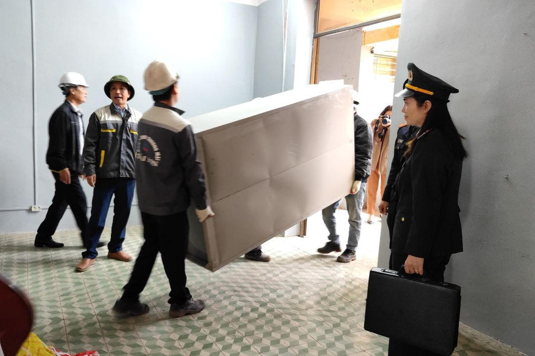 Liệt kê, di chuyển, bàn giao toàn bộ tài sản không kê biên thuộc sở hữu của Công ty cổ phần Licogi 15. Ảnh: P. Dương |