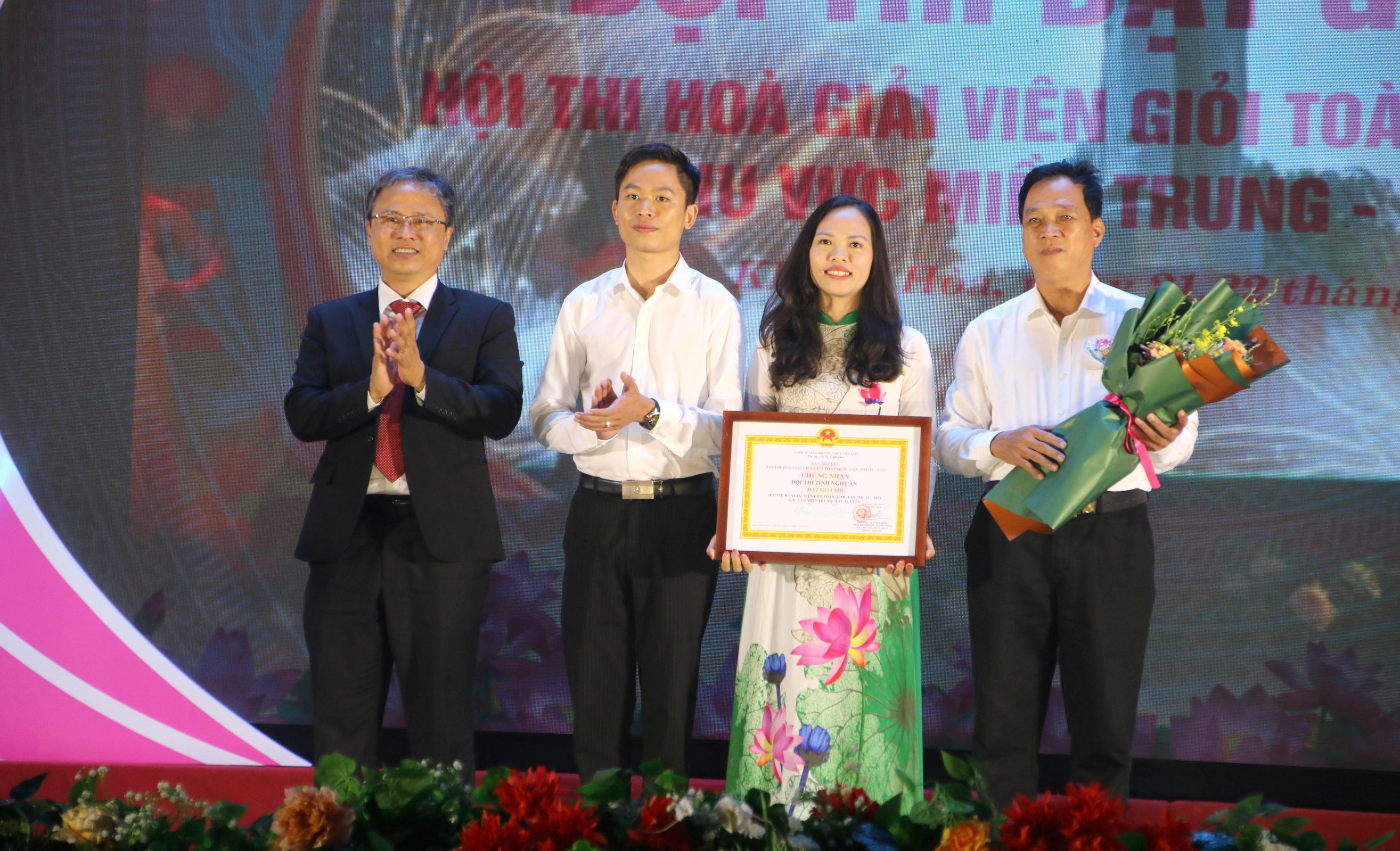 | Ông Trần Hòa Nam, Phó Chủ tịch UBND tỉnh Khánh Hòa trao giải Nhì cho Đội thi tỉnh Nghệ An. |