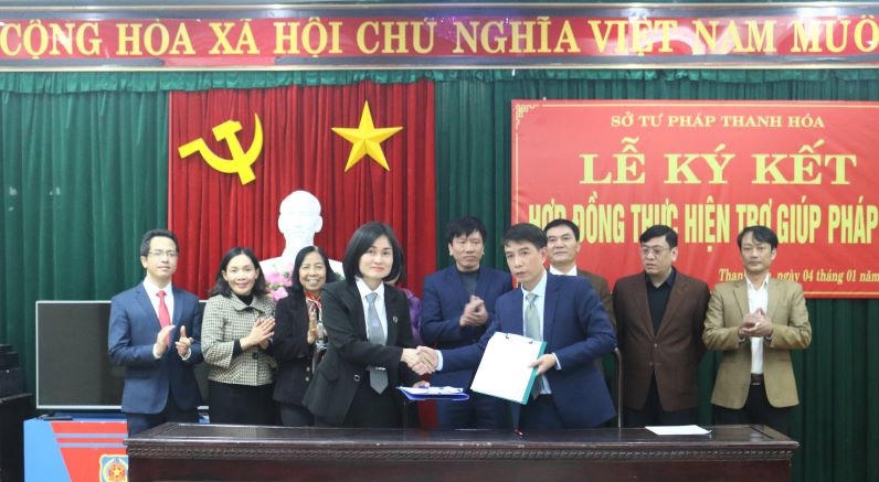 Vừa qua Sở Tư pháp tỉnh Thanh Hoá đã tổ chức lễ ký kết hợp đồng thực hiện trợ giúp pháp lý với các luật sư và các tổ chức hành nghề luật sư. Qua kiểm tra đánh giá. Kết quả, có 1 tổ chức hành nghề luật sư là Công ty Luật Năm Châu và 4 luật sư hiện đang công tác tại các Văn phòng Luật sư Thiên Phúc, Bắc Thành, Công ty Luật TNHH MTV 36 & Cộng sự và Hội Bảo trợ người khuyết tật và trẻ mồ côi tỉnh Thanh Hóa được lựa chọn ký kết hợp đồng TGPL.