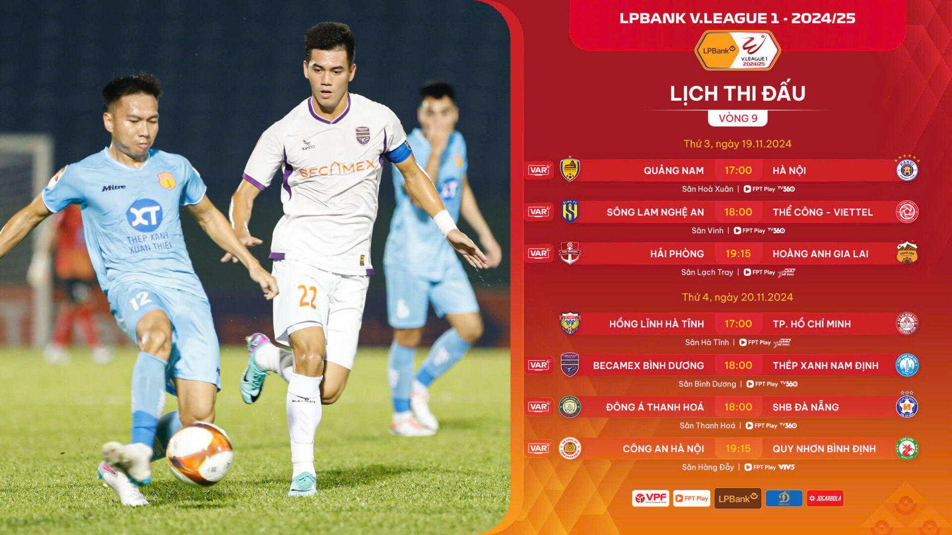Cả 4 trận còn lại của vòng 9 V.League 2024/25 đều diễn ra vào ngày thứ 4 (20/11)
