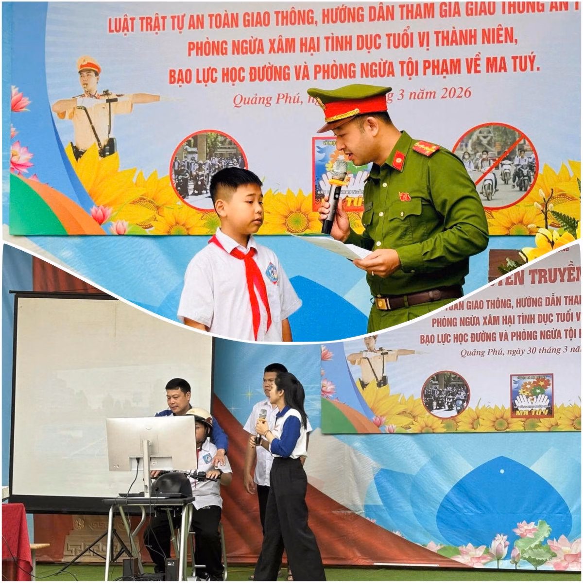 Không dừng lại ở lý thuyết, các buổi tuyên truyền được thiết kế sinh động, tăng cường tương tác thông qua hỏi – đáp tình huống, giúp học sinh dễ hiểu, dễ nhớ. Nhiều nội dung “nóng” như phòng, chống bạo lực học đường, tác hại của ma túy, phòng ngừa xâm hại ở lứa tuổi vị thành niên được lồng ghép linh hoạt, qua đó nâng cao nhận thức và kỹ năng tự bảo vệ cho học sinh.