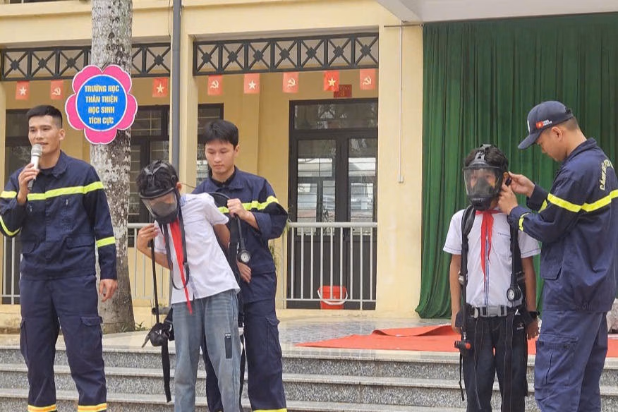 Tại phường Đông Sơn và xã Triệu Sơn, nhiều chương trình được tổ chức theo hình thức “học đi đôi với hành”, cho phép học sinh trực tiếp trải nghiệm sử dụng bình chữa cháy, thực hành thoát hiểm, sơ cấp cứu ban đầu; trong khi tại xã Quang Chiểu, nội dung ứng phó thiên tai được lồng ghép sát với điều kiện thực tế địa bàn.