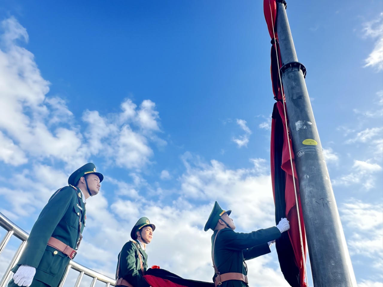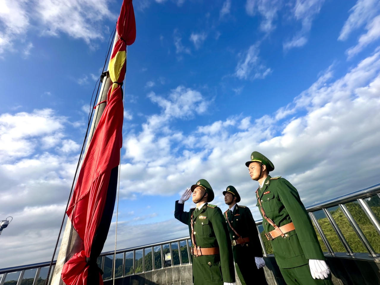 Cũng trong sáng nay, Đồn Biên phòng Lũng Cú thực hiện nghi lễ treo cờ rủ tưởng nhớ Tổng Bí thư Nguyễn Phú Trọng tại Cột cờ Lũng Cú, xã Lũng Cú, huyện Đồng Văn, tỉnh Hà Giang.