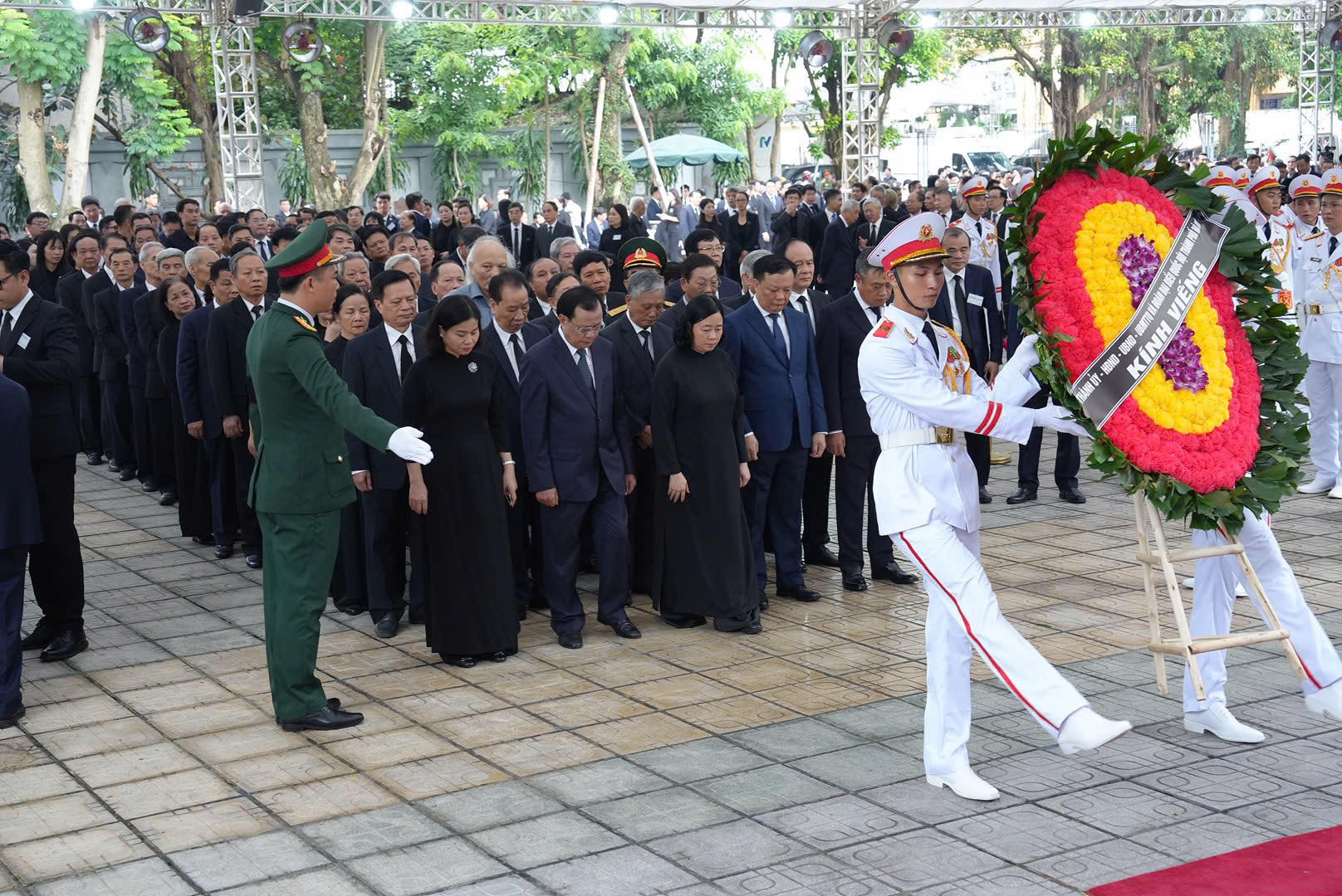 Đoàn Hà Nội do Ủy viên Bộ Chính trị, Bí thư Thành ủy Hà Nội Bùi Thị Minh Hoài làm trưởng đoàn vào viếng.