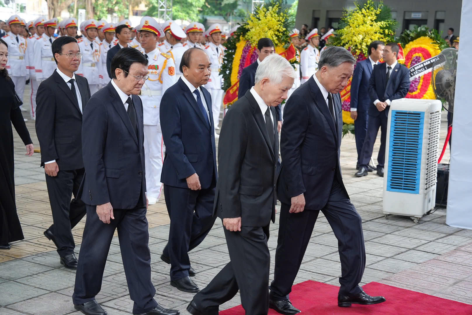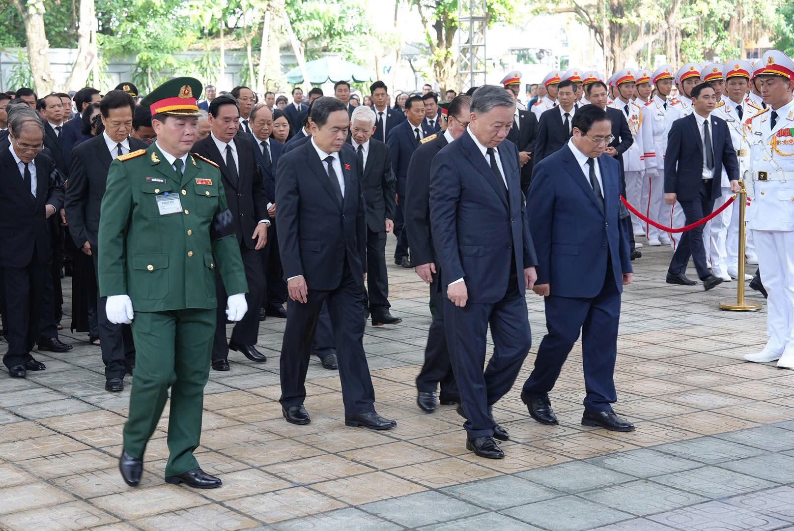 Đoàn Ban chấp hành Trung ương Đảng cộng sản Việt Nam do Chủ tịch nước Tô Lâm làm trưởng đoàn vào viếng Tổng Bí thư. Ảnh: Mỵ Châu. |