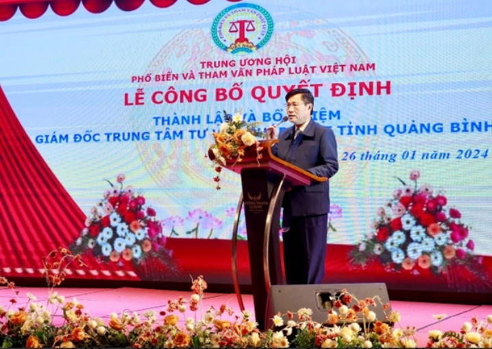 Tại buổi công bố quyết định, Chủ tịch Trung ương Hội đã trao Quyết định thành lập và bổ nhiệm ông Mai Xuân Hiển, giữ chức vụ Giám đốc Trung tâm Tư vấn Pháp luật tỉnh Quảng Bình.