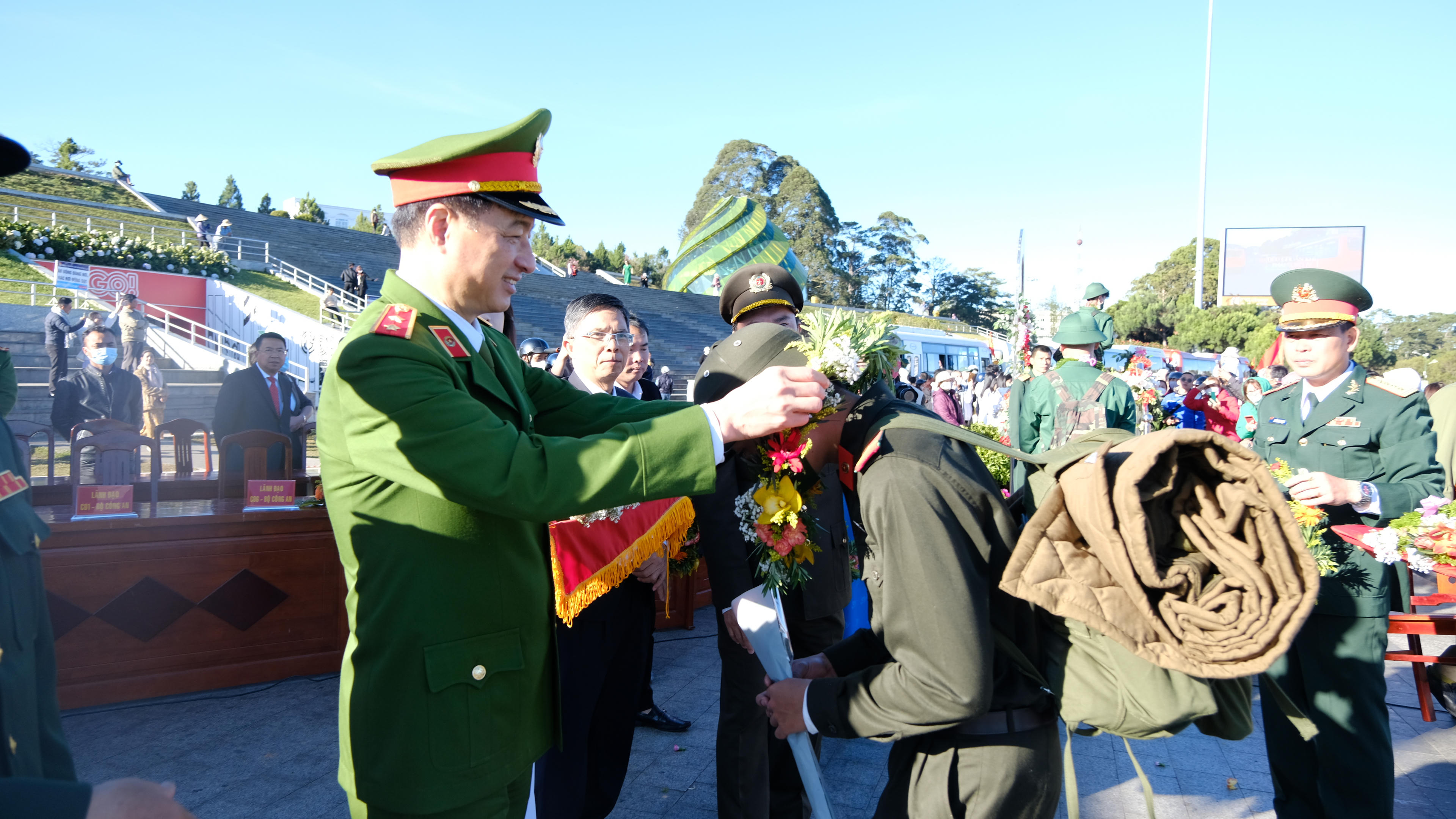 Tại lễ giao nhận quân, các đồng chí lãnh đạo Trung ương, tỉnh Lâm Đồng và TP Đà Lạt đã tặng hoa, động viên các tân binh tham gia đợt tuyển quân lần này.