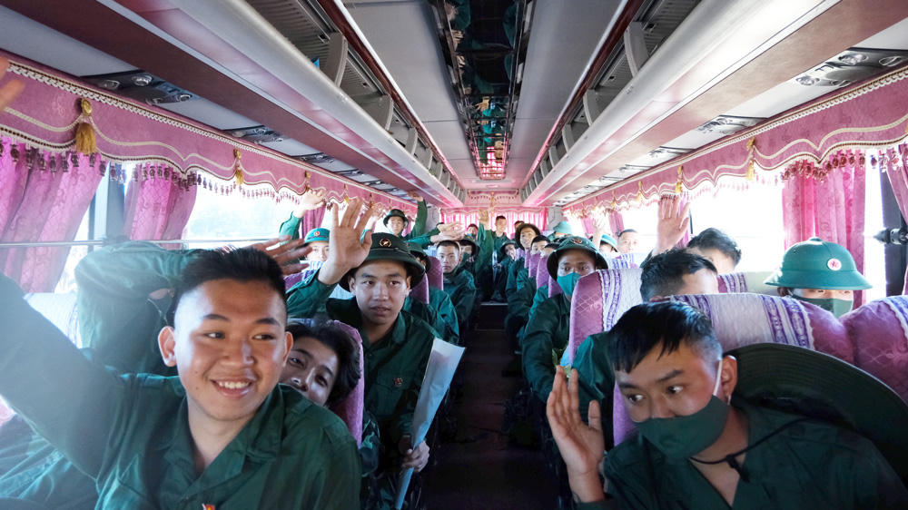 Thanh niên Lâm Đồng phấn khởi lên đường. Ảnh Báo Lâm Đồng. |