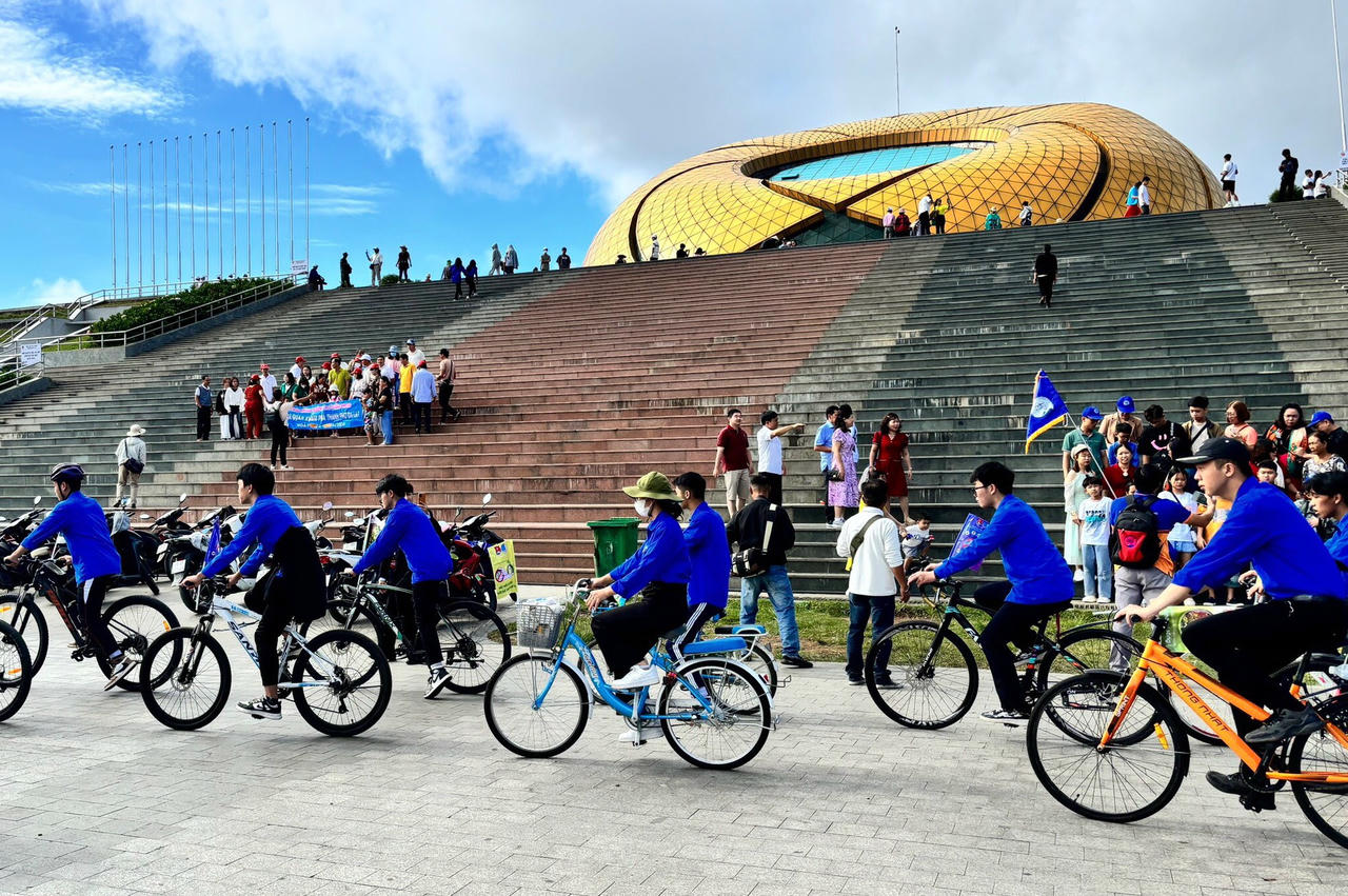 Đoàn viên thanh niên đạp xe đạp tuyên truyền về bảo vệ môi trường, xây dựng văn minh đô thị. |