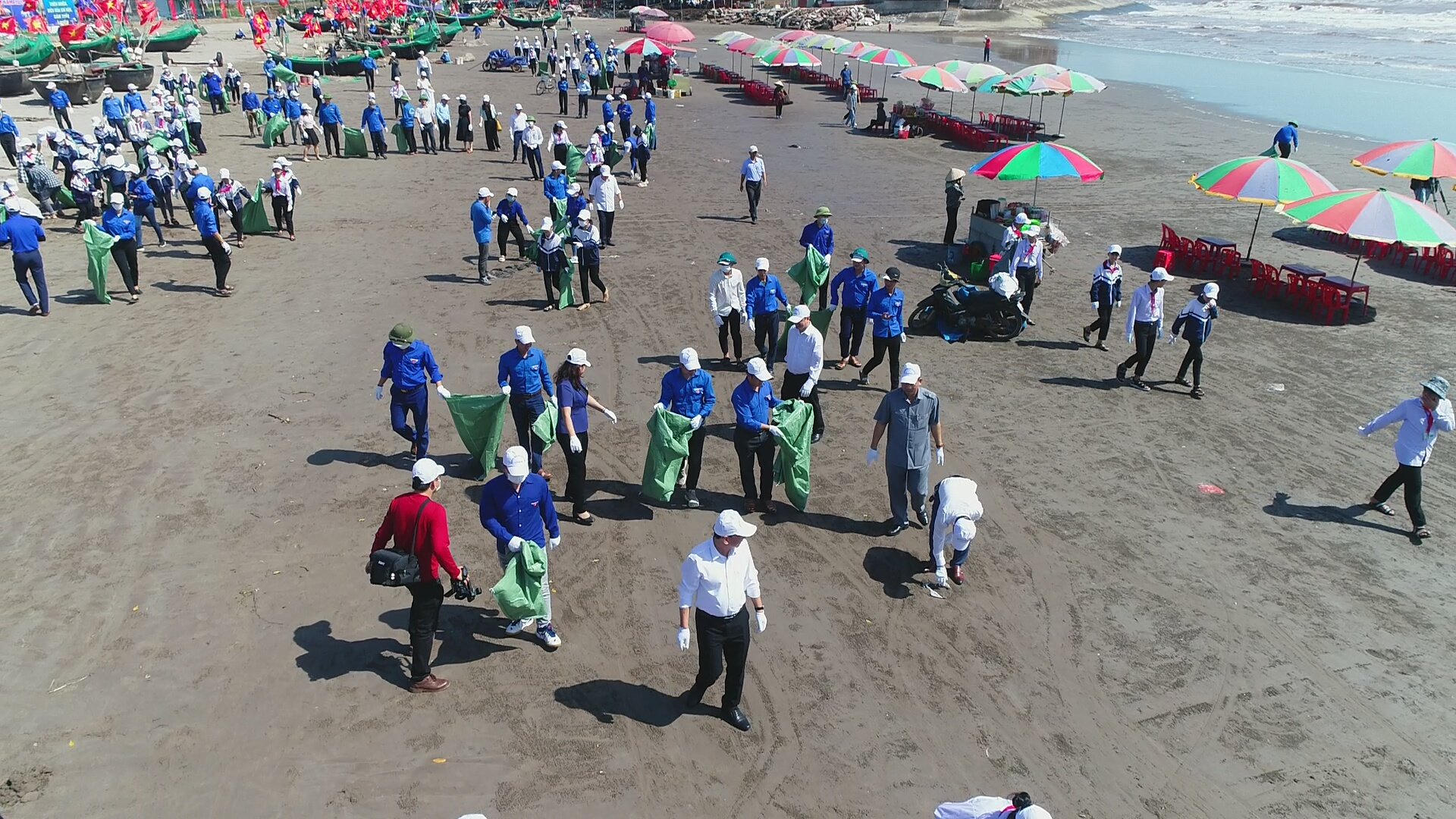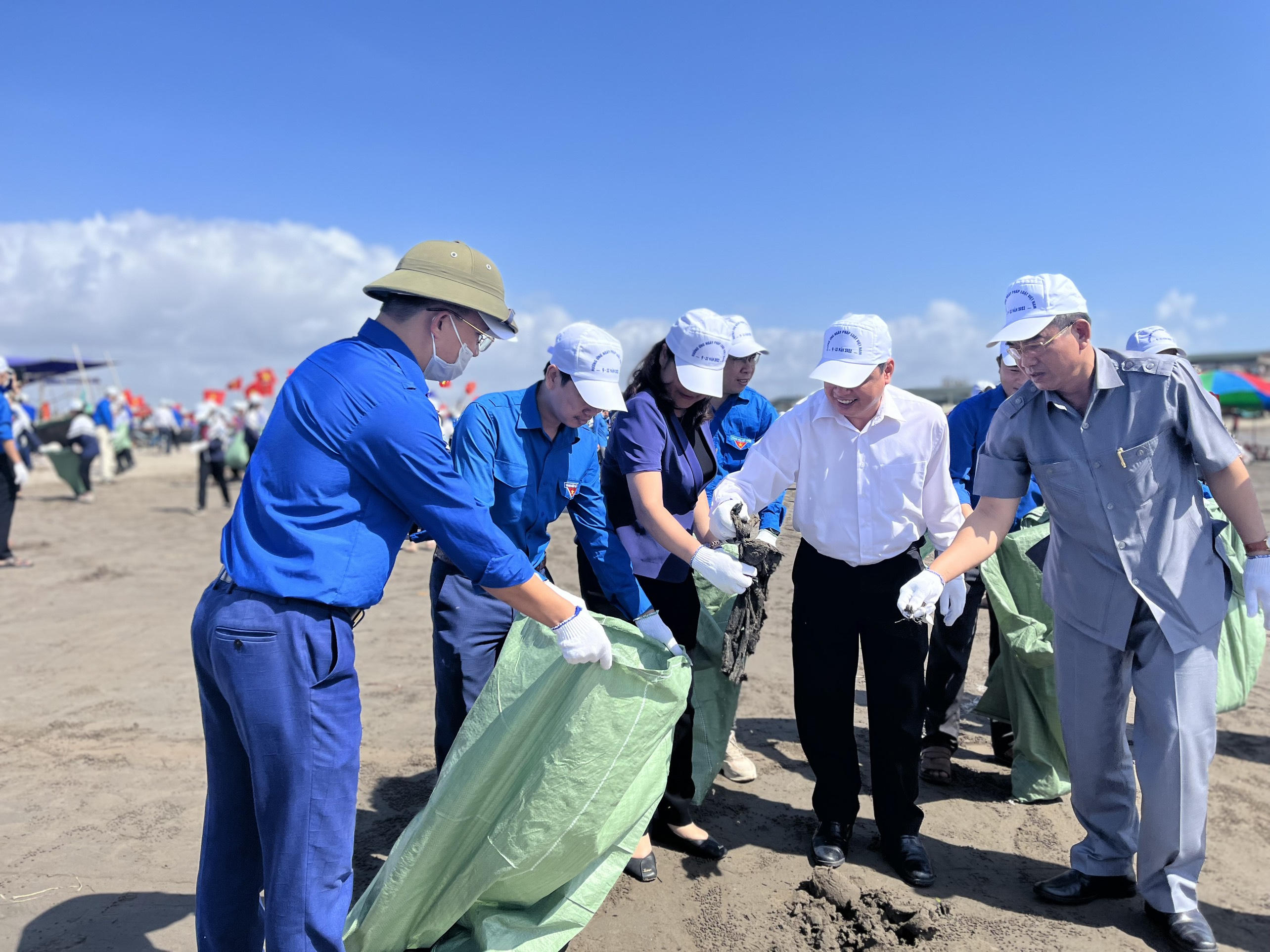 Sau lễ phát động, các đại biểu tham dự đã cùng đoàn viên thanh niên và nhân dân sở tại tham gia hoạt động làm sạch bờ biển Hải Lý.