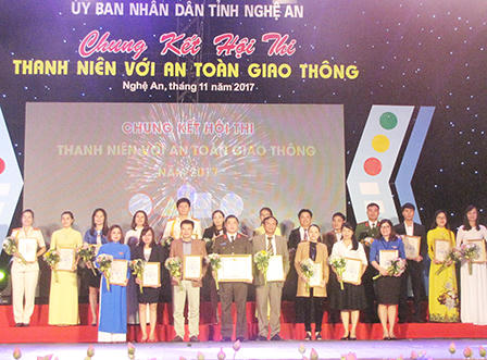 Tối 9/11, Chung kết và trao giải Hội thi “Thanh niên với an toàn giao thông năm 2017” được UBND tỉnh Nghệ An tổ chức sau 3 vòng sơ khảo hưởng ứng Ngày pháp luật Việt Nam năm 2017 (9/11/2017).