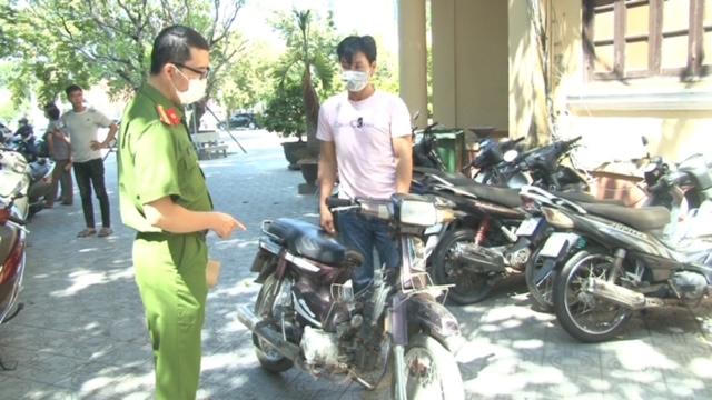 Đối tượng Quốc cùng phương tiện gây tai nạn đến đầu thú tại cơ quan Công an. |