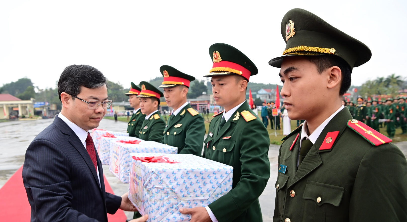 Tại lễ giao quân, lãnh đạo tỉnh và các địa phương đã tặng hoa, động viên các tân binh nỗ lực rèn luyện, chấp hành nghiêm kỷ luật Quân đội, tiếp bước cha ông, phát huy truyền thống Quân đội nhân dân Việt Nam anh hùng, xứng đáng với tình cảm, niềm tự hào và truyền thống cách mạng của quê hương.
