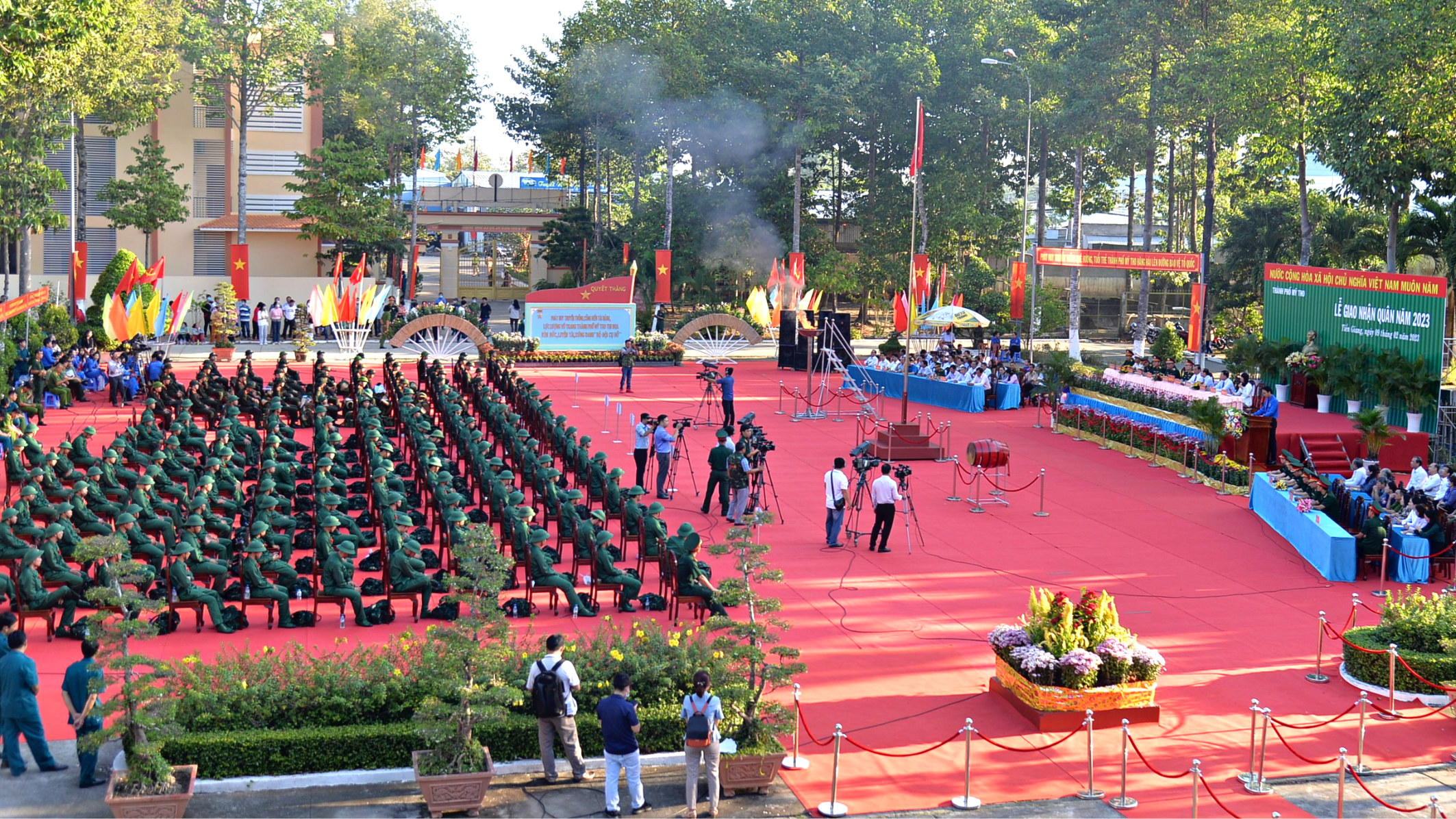 Toàn cảnh lễ giao nhận quân tại TP Mỹ Tho, Tiền Giang |