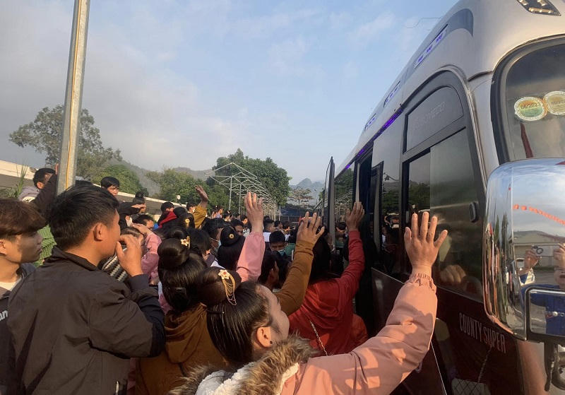 Các tân binh lên xe để trở về đơn vị trong niềm hân hoan chung. |