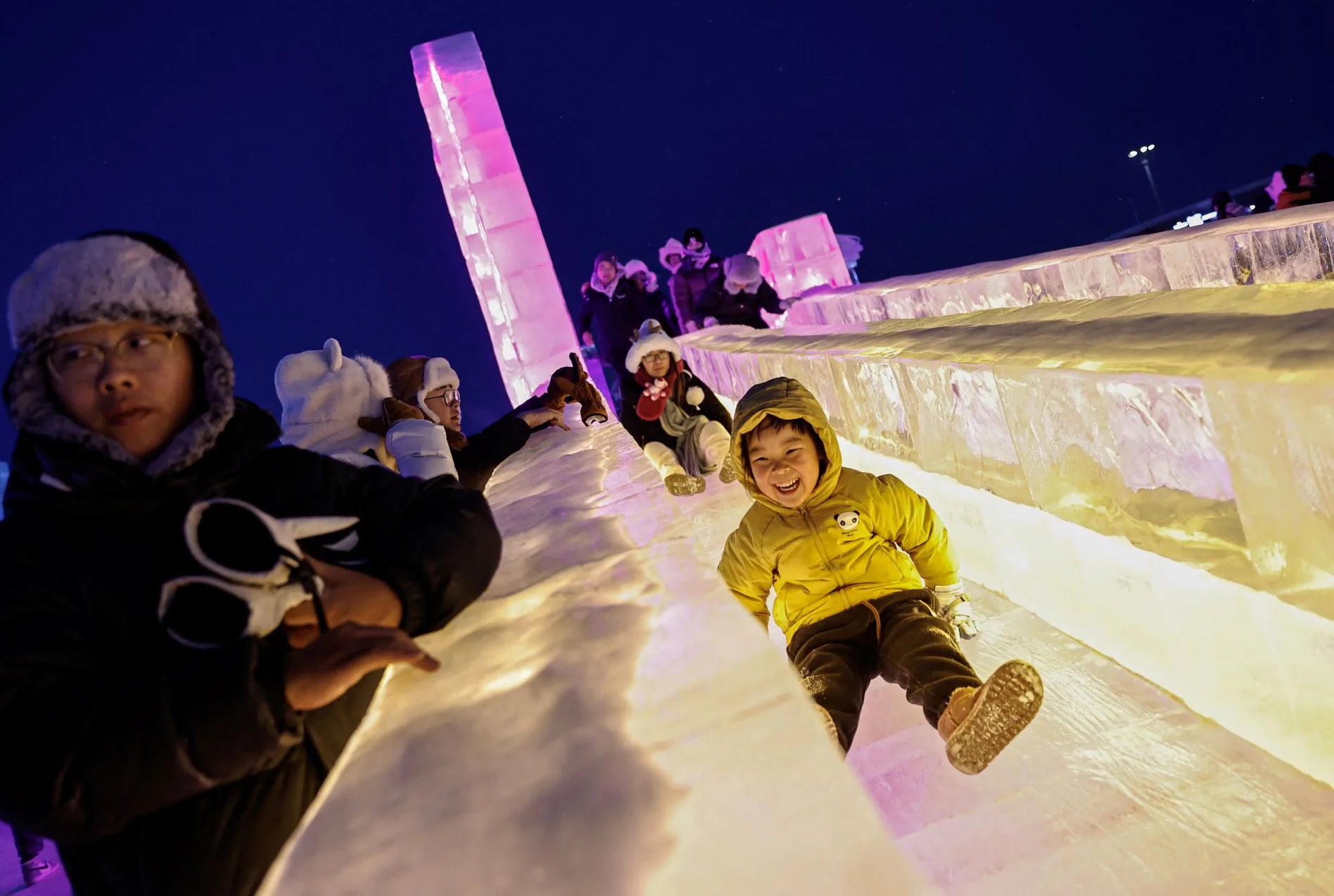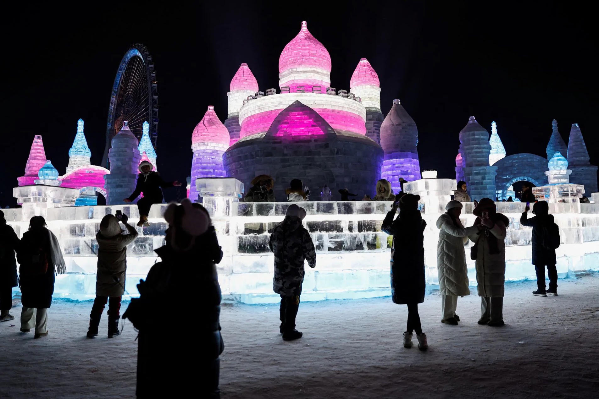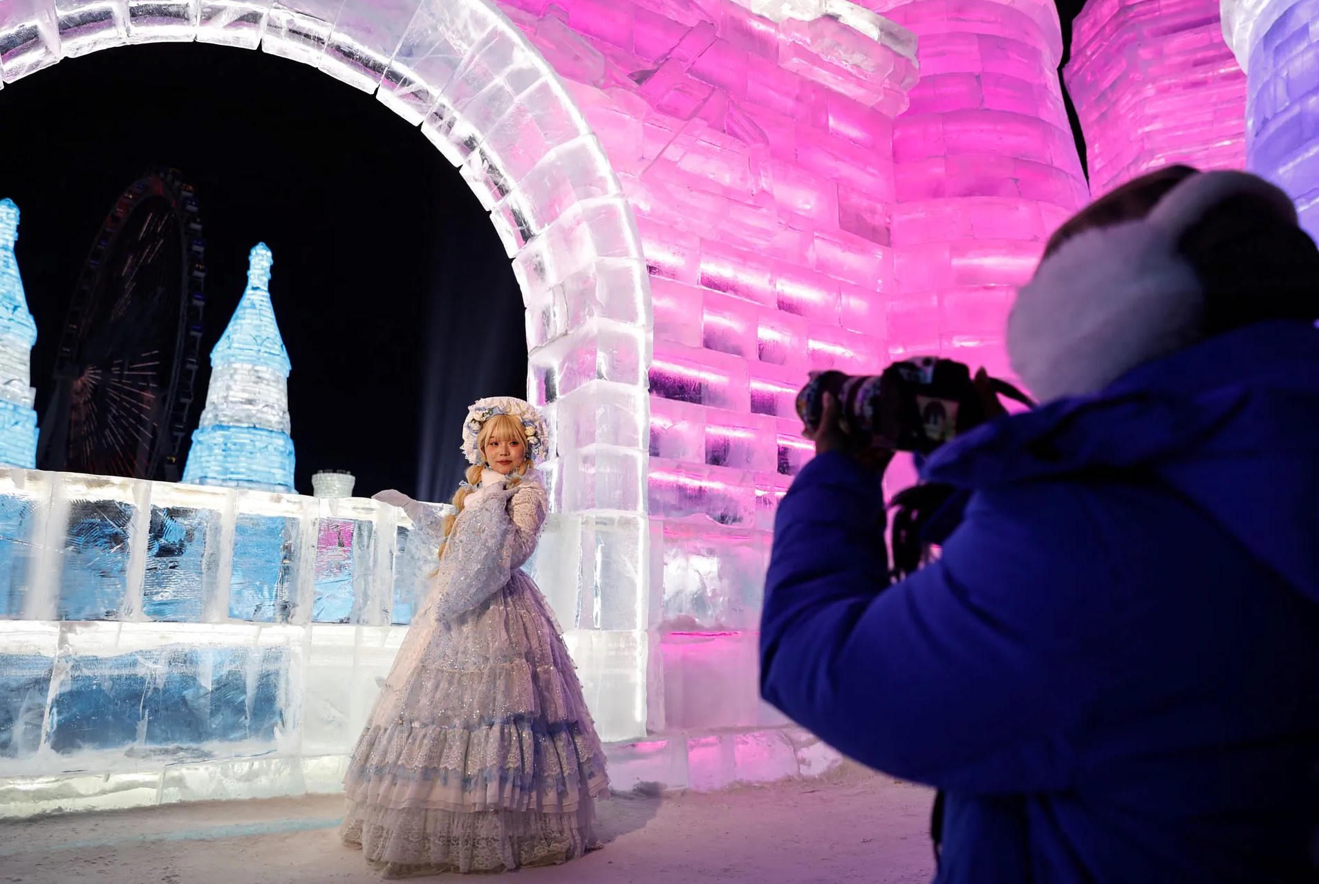 Lễ hội năm nay thu hút 3,05 triệu du khách đến Cáp Nhĩ Tân trong kỳ nghỉ năm mới kéo dài ba ngày, tạo ra doanh thu 5,91 tỷ nhân dân tệ (826 triệu USD). Ảnh: Reuters. |