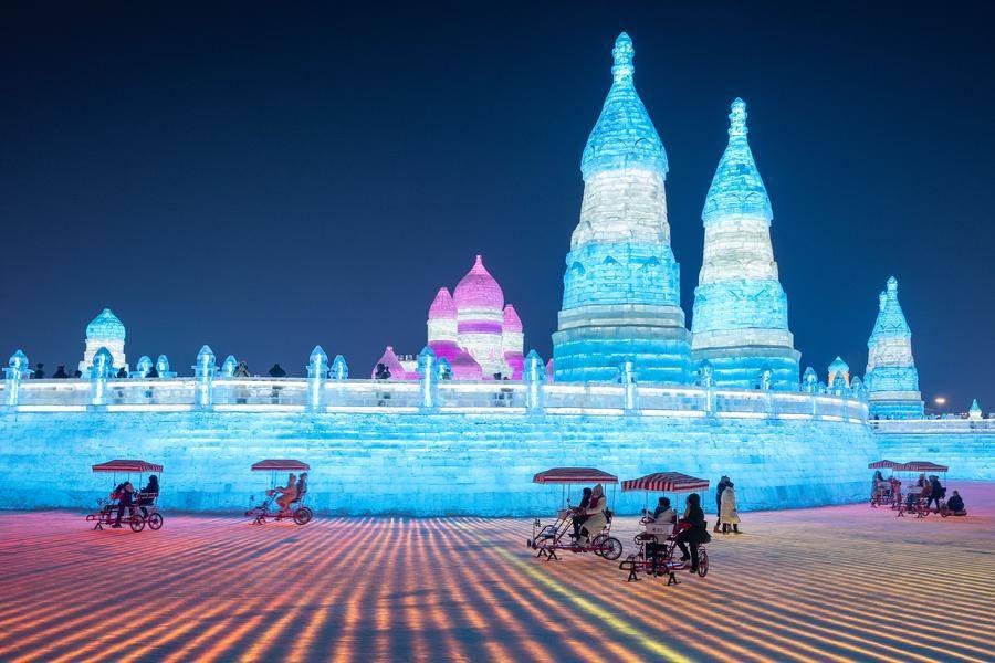 Lễ hội Băng đăng Quốc tế Cáp Nhĩ Tân là sự kiện nổi bật tổ chức hàng năm thúc đẩy kinh tế du lịch vào mùa đông ở thành phố cùng tên thuộc tỉnh Hắc Long Giang. Ảnh: Xinhua. |
