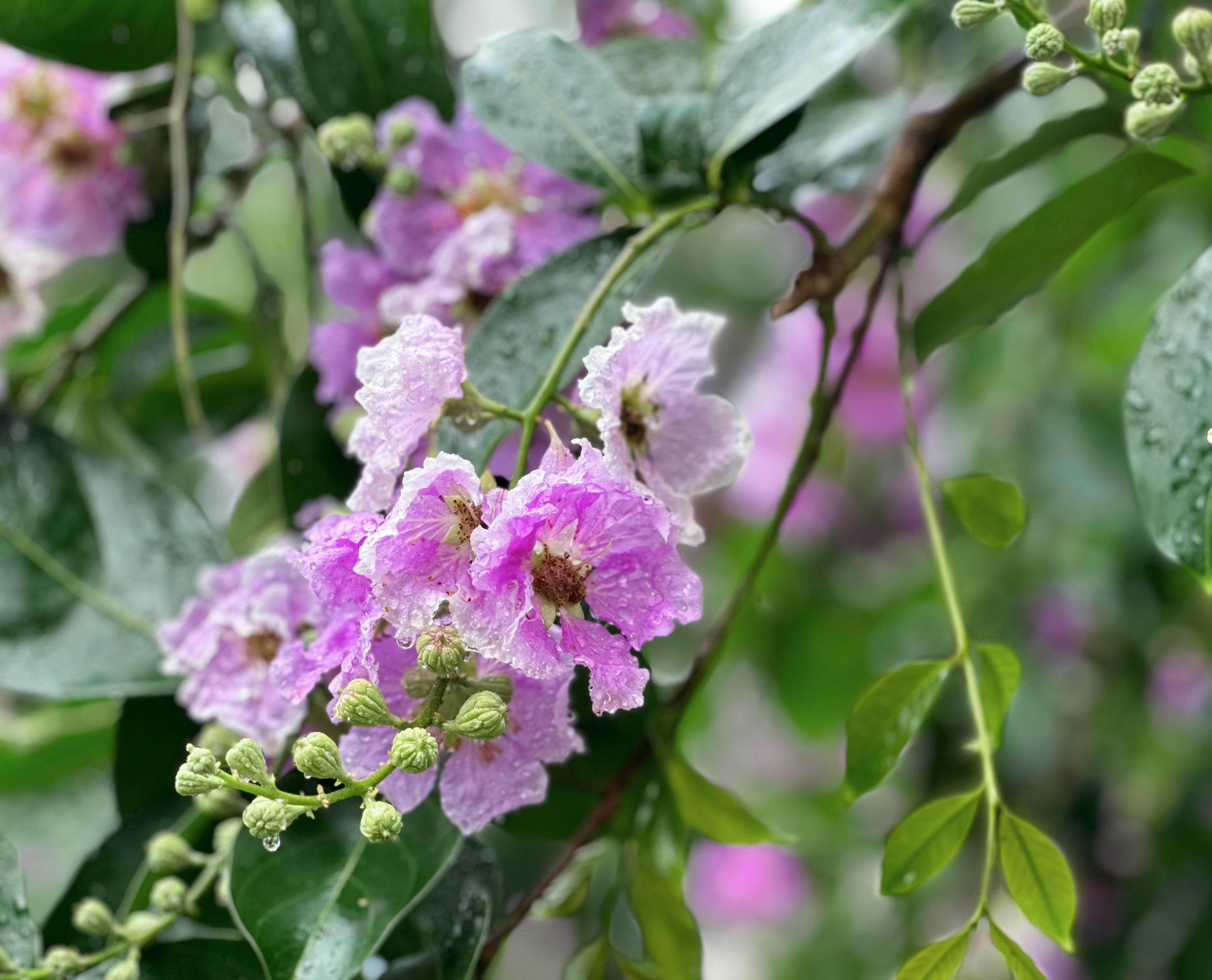 Những bông hoa bằng lăng tím dịu dàng sau cơn mưa đầu mùa